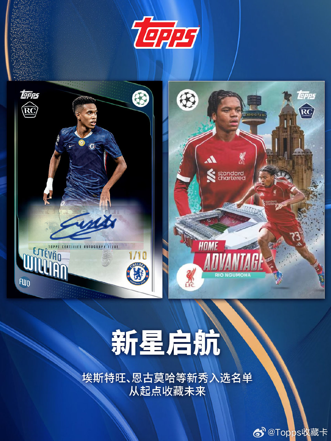 ⚽️ 王炸上新!Topps UCC旗舰系列,承包你的欧洲足球收藏图鉴!✨足球卡收藏家们,新年第一波硬货已就位!2025-26 Topps UCC旗舰系列,今日正式登陆。三大核心亮点,构建你的完整收藏宇宙:🔹 新秀雷达全开:网罗本赛季欧洲足坛最炙手可热的超新星,提前锁定未来传奇。🔹 传奇宝库开启:从经典传奇到当代巨星,重磅签名卡、实物切割卡等高光藏品集中亮相。🔹 创意打破次元:「8-bit像素风」特卡玩趣登场,用复古游戏感重塑经典庆祝时刻!⏰ 发售已开启:今日14:00🛒 入手渠道:Topps天猫旗舰店你的收藏之旅,将从哪一张开始?评论区晒出你最心动的亮点!topps 球星卡 足球 欧冠联赛