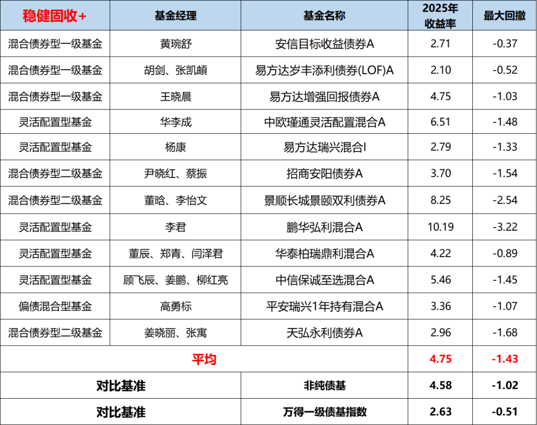稳健“固收+”(最大回撤<8%)