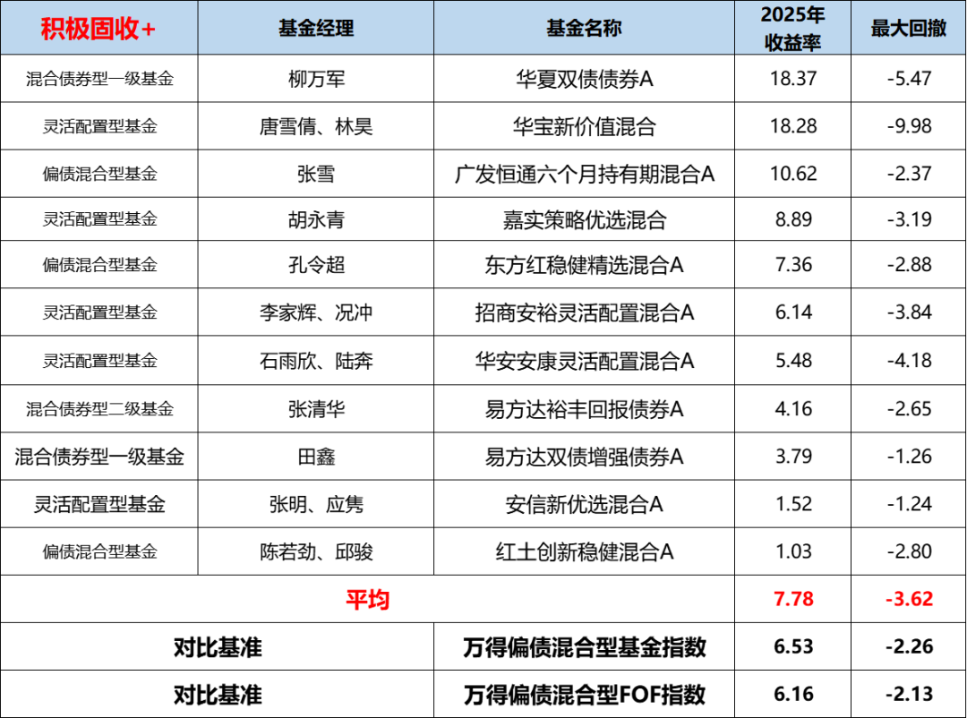 我们即将发布的2026年固收类基金榜单,也会更侧重于这类基金,我们还在2026年的榜单中首次加入了一些偏债混合型FOF。