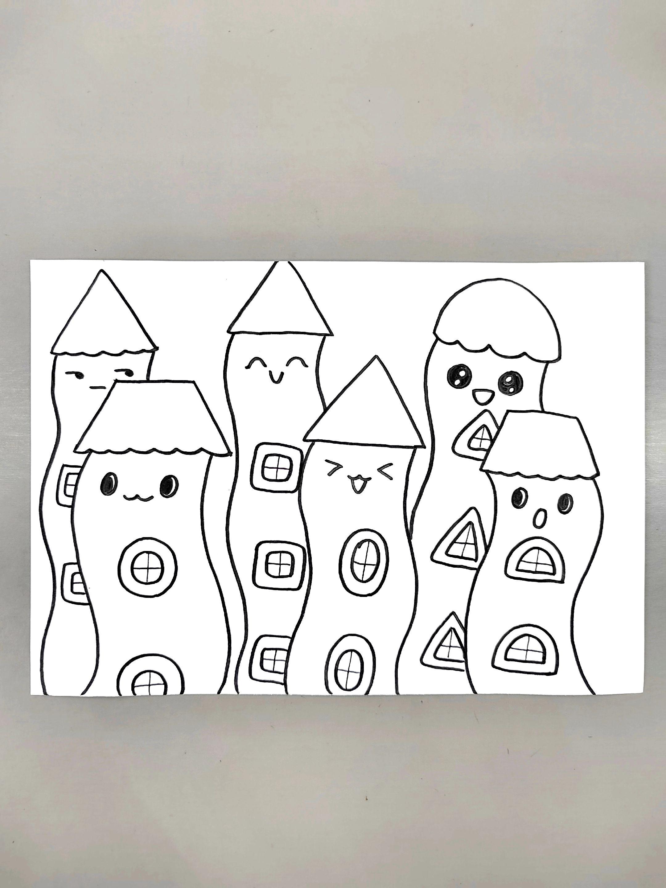 歪歪扭扭的小房子创意画,简单有趣,快来试试吧
