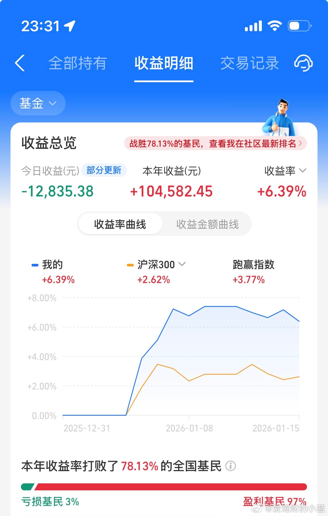 今年基金收益率7.25跑赢全国95.58%的基民。