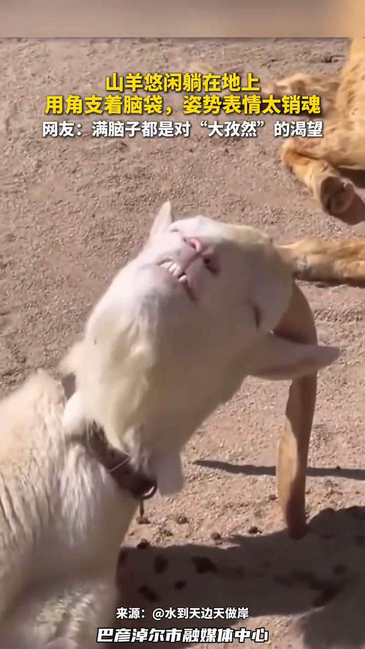 山羊悠闲躺在地上,用角支着脑袋,姿势表情太销魂。网友:满脑子都是对"大孜然"的渴望。 近日,陕西。 来源:@水到天边天做岸。巴彦淖尔市融媒体中心。