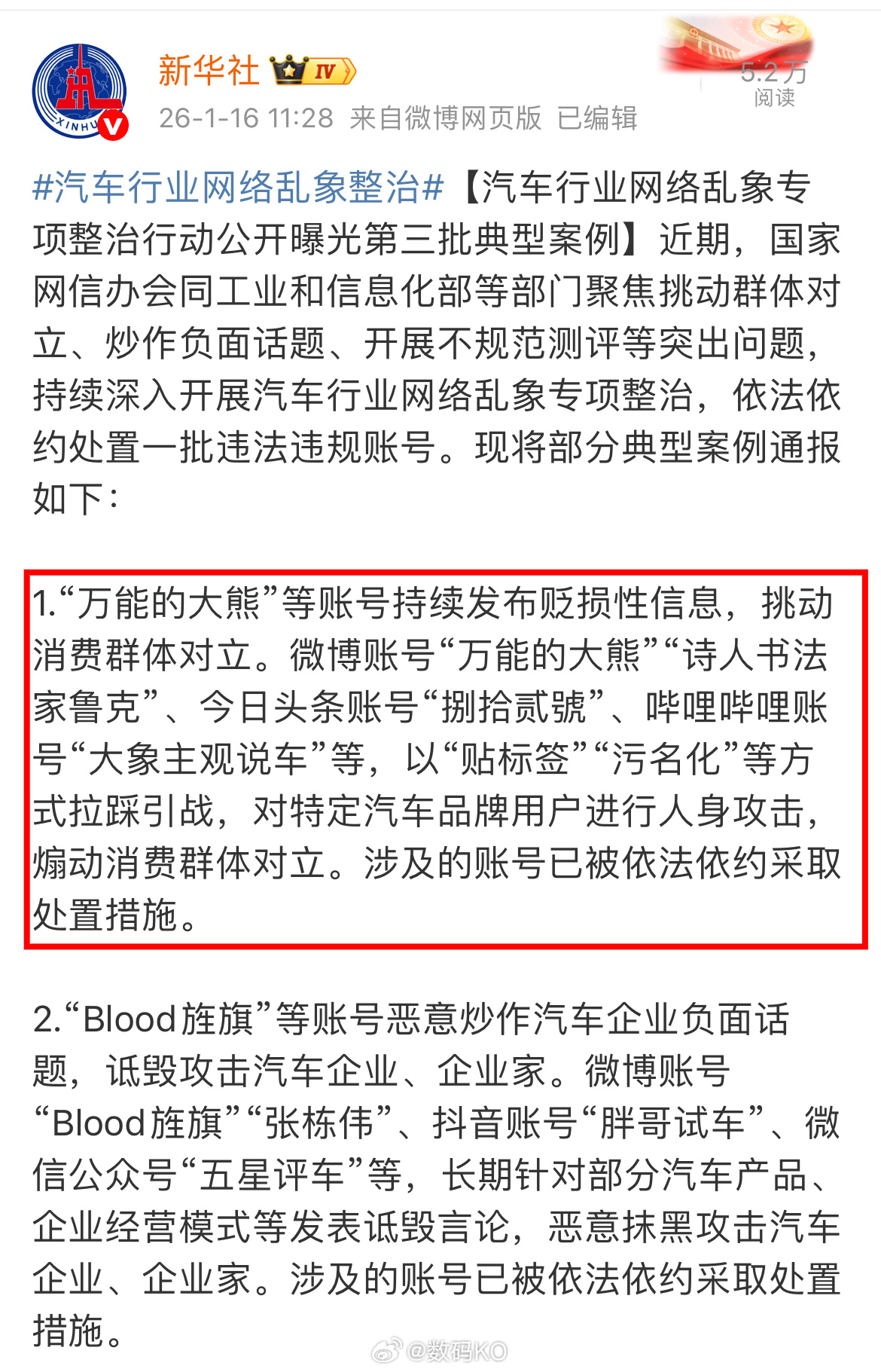 汽车行业乱象第三批处罚,万能的大熊、诗人书法家鲁克、捌拾贰號等人上榜。
