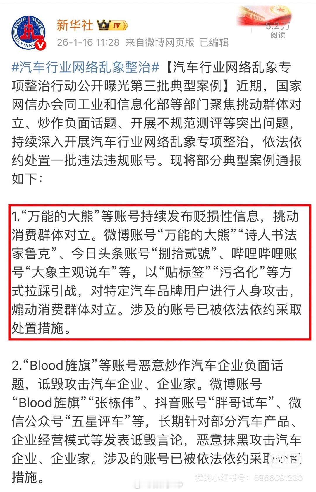 汽车行业乱象第三批处罚,万能的大熊、诗人书法家鲁克、捌拾贰號等人上榜。