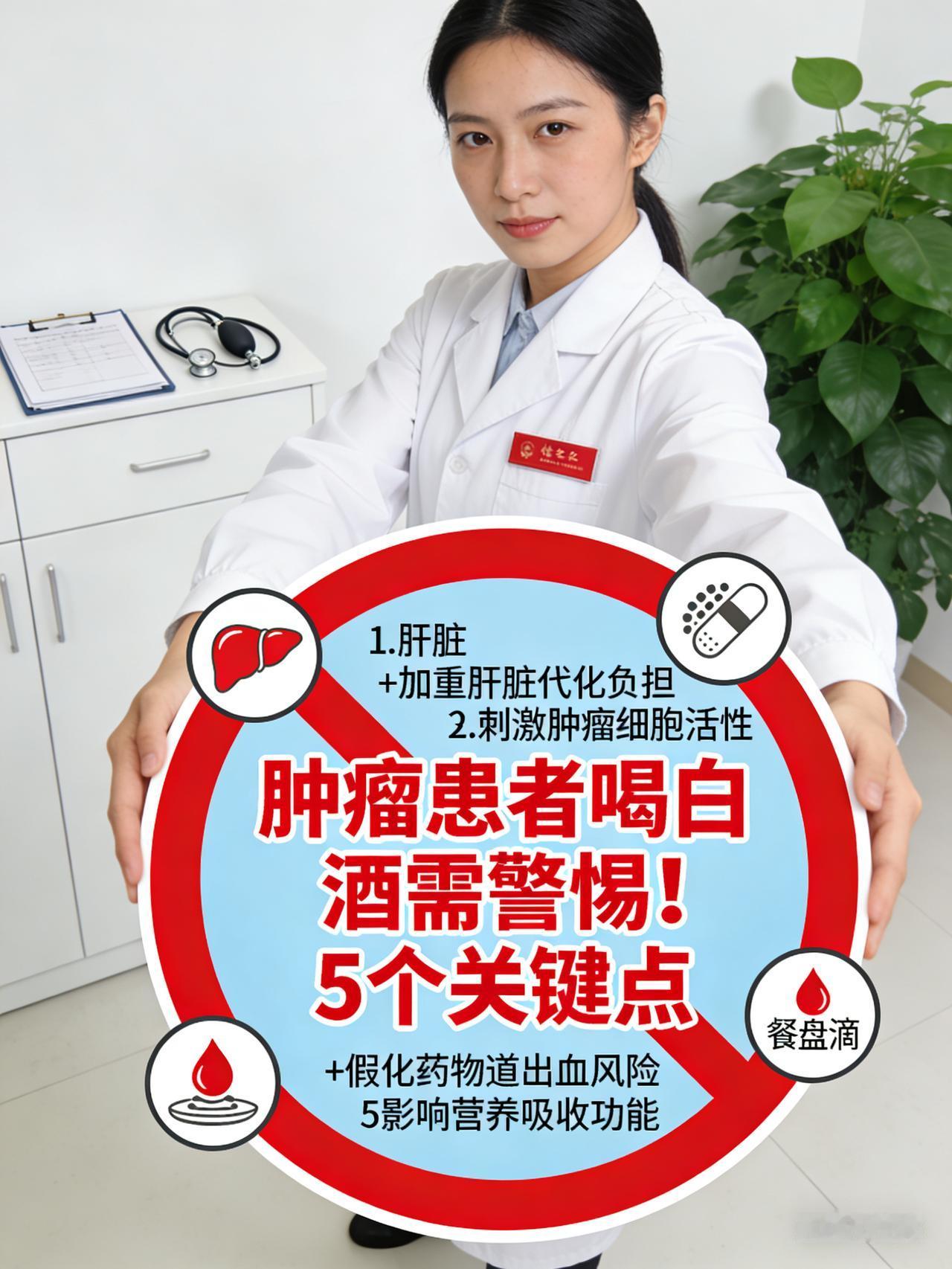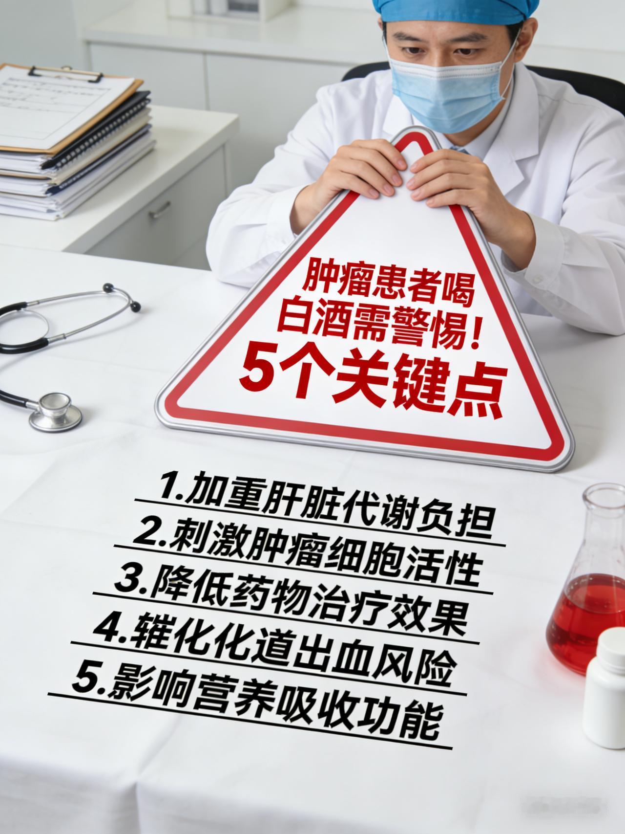 肿瘤患者喝白酒需警惕!医生提醒 5 个关键点 白酒变“毒酒”!肿瘤患者若想举杯,医生勒令关注这5条“保命法则” 白酒再次被推上风口浪尖!对于肿瘤患者而言,这杯中物早已不是“解忧杜康”,而是可能引爆病情的“定时炸弹”。世界卫生组织早已将酒精列为一级致癌物,其代谢产物乙醛更是癌细胞的“强力助燃剂”。 若您正处于抗癌期,医生勒令必须盯紧这5个“生死关卡”: 1. 严防“唤醒”休眠癌细胞 酒精不仅是致癌元凶,更会通过促进血管生成和炎症因子释放,为微小转移灶提供“养分”。数据显示,确诊后持续饮酒者,复发转移风险激增30%以上,这绝非吓唬,而是肿瘤微环境的真实恶化。 2. 杜绝“药物互搏” 化疗药、靶向药均需肝脏代谢。酒精会引发“双硫仑样反应”,导致呼吸抑制甚至猝死;更会让免疫检查点抑制剂(PD-1/PD-L1)疗效大打折扣,让几十万的“神药”瞬间失效。 3. 守住“代谢引擎” 肝脏是人体的解毒工厂,肿瘤本身已让肝功负重前行。酒精的加入极易诱发急性肝坏死,一旦肝功能指标爆表,救命的抗肿瘤治疗只能被迫叫停。 4. 避开“物理灼伤” 尤其是头颈部、食管及胃癌患者,高浓度白酒是直接的化学腐蚀剂,极易导致吻合口瘘、大出血或剧烈疼痛。 5. 警惕“隐性营养掠夺” 酒精会阻碍蛋白质和微量元素的吸收,导致恶液质提前到来。所谓的“活血化瘀”功效,远抵不过它对身体的透支。 抗癌是一场没有退路的战役,别让一时的酒瘾成为压垮免疫系统的最后一根稻草。最好的“酒”是以茶代酒,最好的“义气”是活着相见!