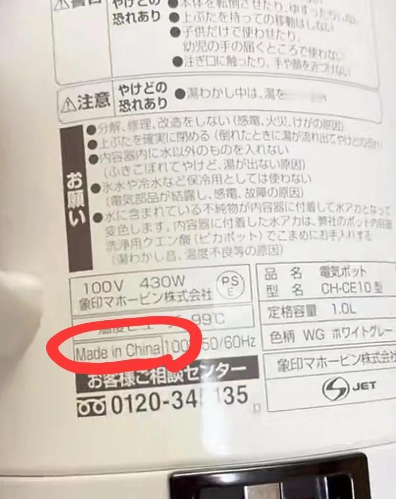 他手里拿着一个日本煮水壶 各种夸 质量好,工匠精神,煮六年干净如新没有水垢……用料扎实质量好等等! 赞美之词犹如滔滔江水!当然,老套路,夸日本的水壶后贬低中国水壶! 他一心只想夸日本,却忽略了一个细节。 在他转动煮水壶的时候,水壶的标签明显的写着 中国制造 可以看得出来,这是日本公司在中国定制后拿回日本贴个标签就成了日本产品。多加几倍价钱。 这个拍视频赞美尬吹日本产品的人很尴尬!标签上的中国制造 让他成了笑话。