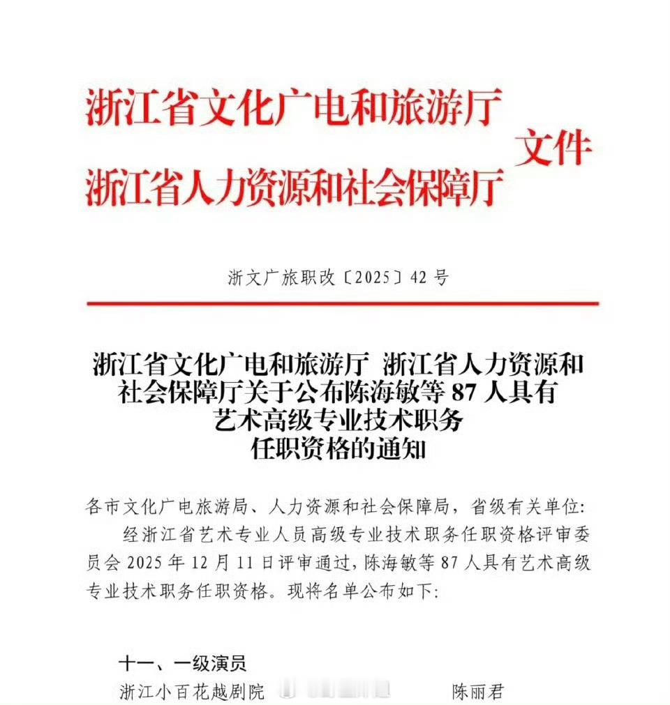 陈丽君获评一级演员根正红苗恭喜恭喜