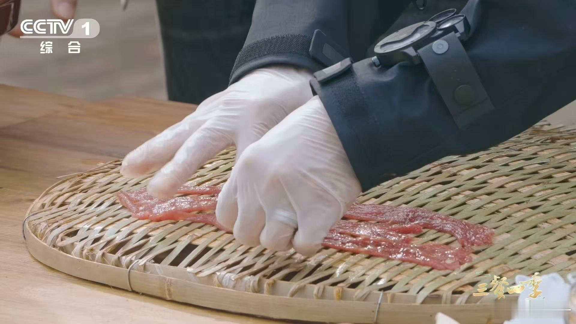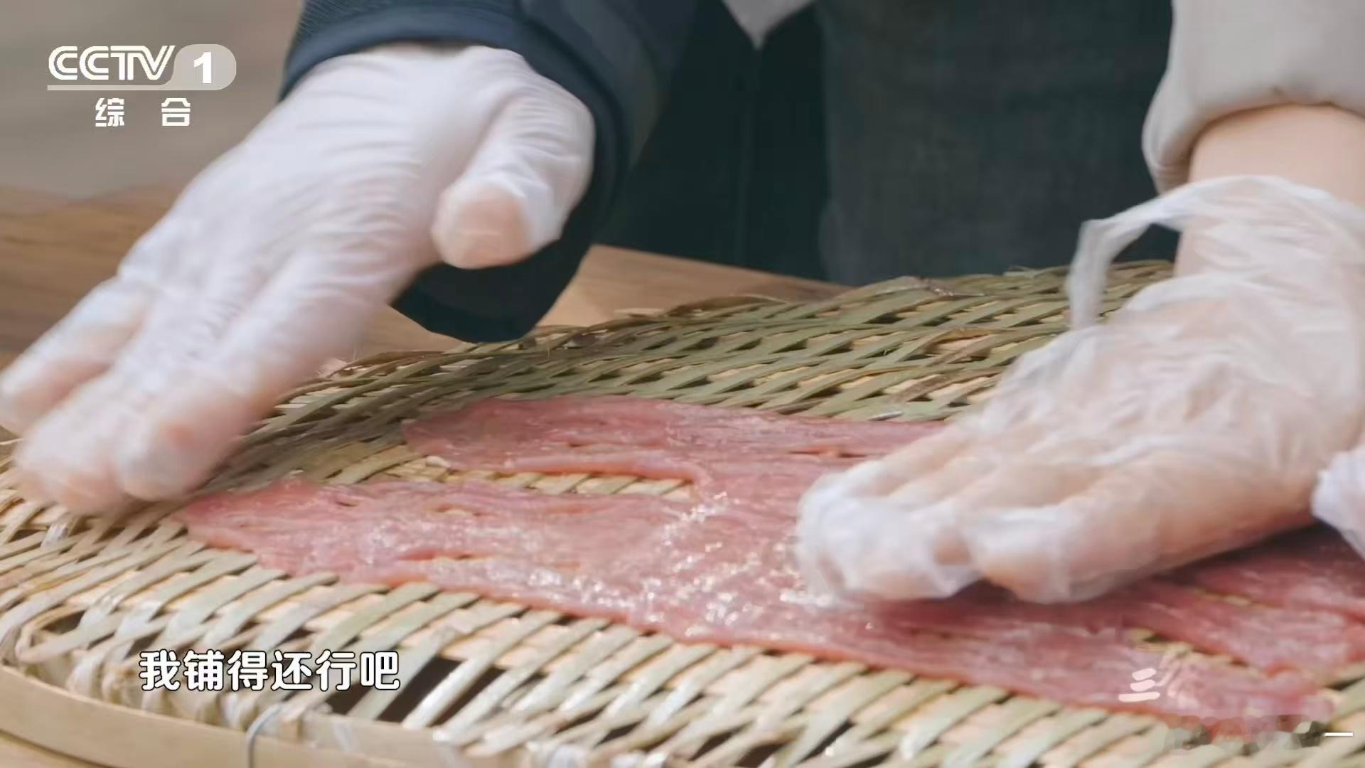 薄可透光的牛肉是怎么做到的红油浸泡提味!牛肉片薄透光,竹筛烘烤融竹香,十余小时制