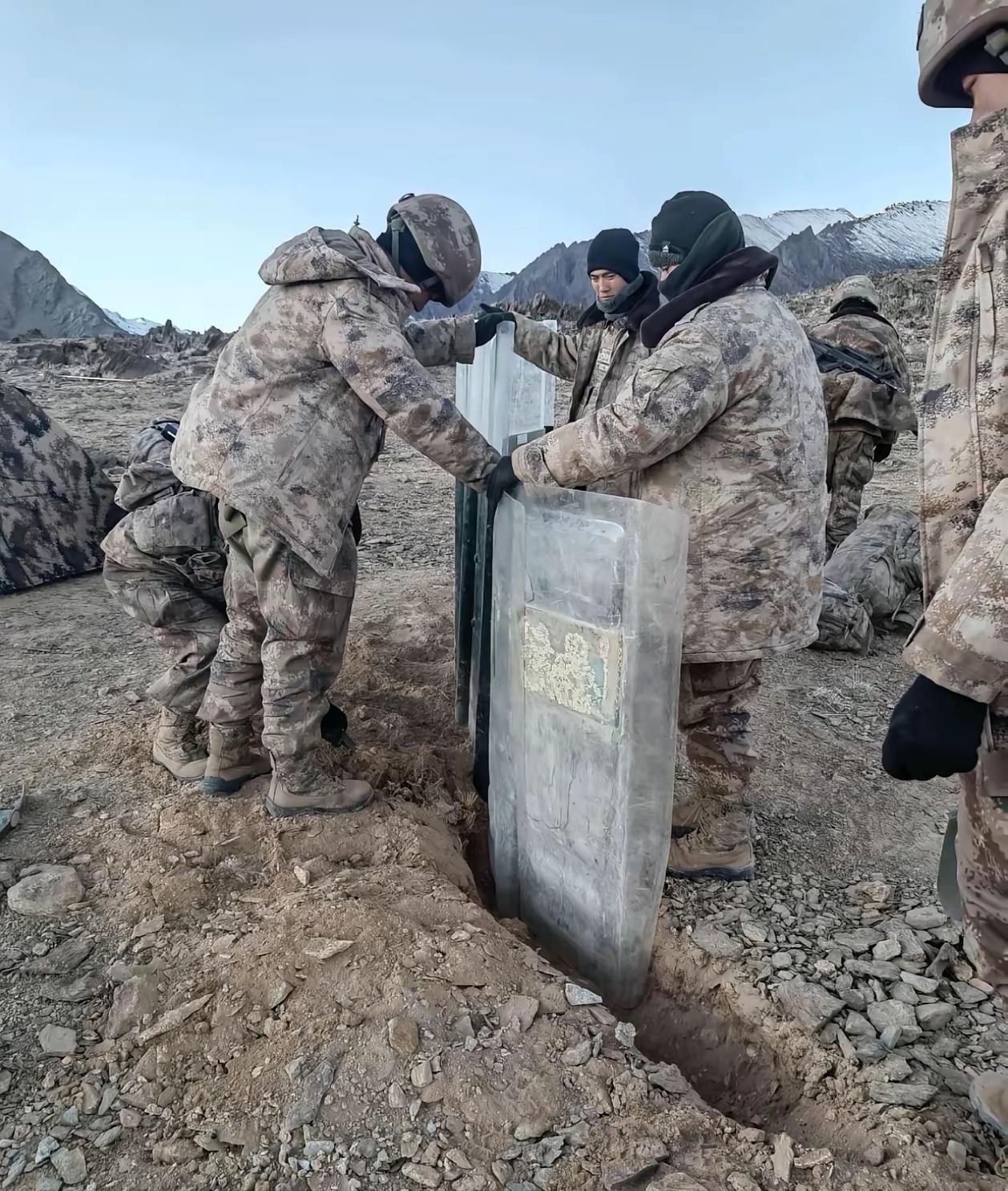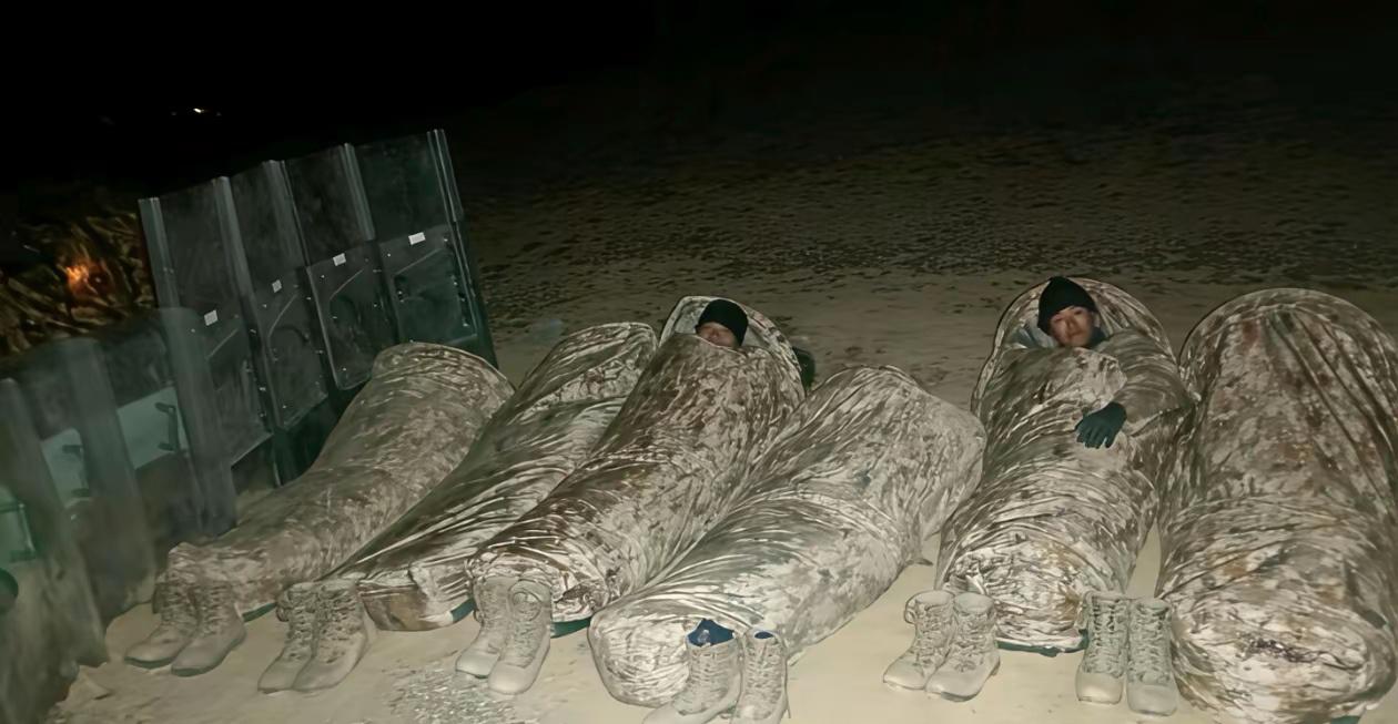 野外驻训的野战部队,战士们直接谁在冰冷的地面上。现在部队训练要求一切从实战出发,