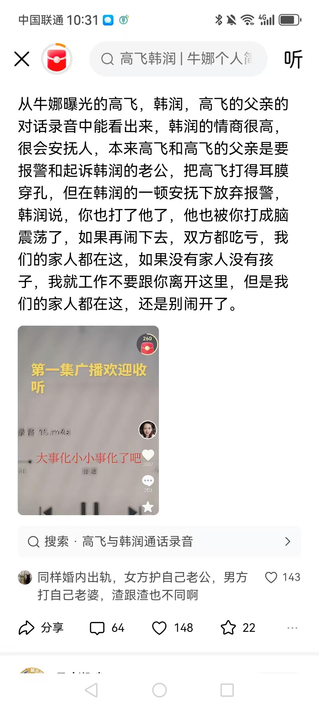 从牛娜曝光的高飞,韩润,韩润的情商很高。据说被打也是几年前的事,韩老公为什么还没