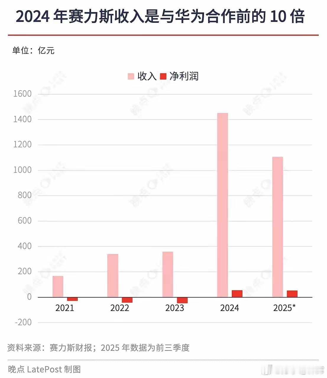 有人觉得华为从赛力斯拿走的太多却不提赛力斯和华为合作后营收翻了7倍,虽然华为拿走了三成,但是这五年赛力斯的收入不仅翻倍还实现了盈利赛力斯还没嫌华为拿走的多,一群不明所以的人却为赛力斯打抱不平,实在是可笑2021年,赛力斯总收入不到200亿,2024年赛力斯的总收入达到了1400多亿,比2021年的收入增长了7倍,2024年之前,赛力斯一直在亏损,2024年才实现了盈利赛力斯采购华为的费用是不低,但是看到华为所提供的东西就会发现,其实华为要的并不多,激光雷达和感知硬件、智能底盘、巨鲸电池、电机电控、鸿蒙座舱等等,如果合作伙伴不是华为而是国外巨头,他们拿走的只会更多