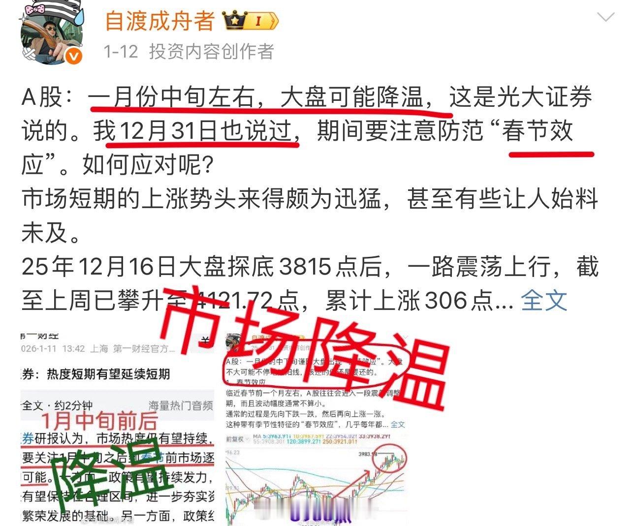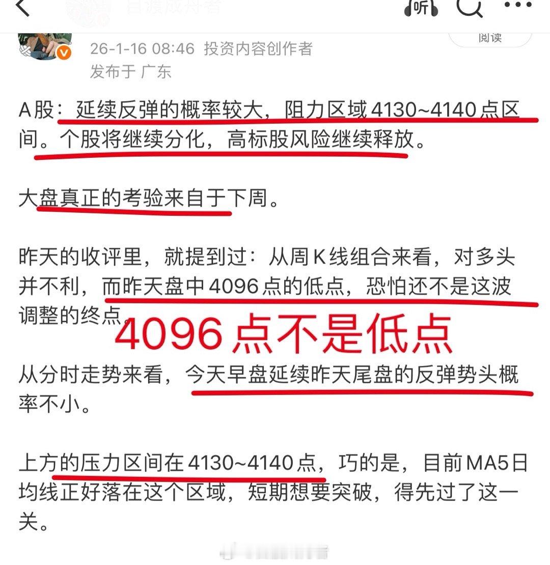 A股:股市要降温,我12日开盘前就表达过这个观点。下周市场将出现短线反弹机会。1,市场回归理性我在12日判断市场将迎来“春节效应”下的降温,主要依据两方面:一是周线级别出现背离的技术信号,二是对当前市场情绪的观察与研判。商业航天板块的成交金额已占到市场日交易额的近两成。我曾提到,即便是2021年风头正盛的白酒板块,也从未有过这样的热度。显然,目前市场对商业航天板块的情绪已经过热了。股市降温的一个显著信号,就是那些领涨的高标股出现下跌,要不然就不是降温。14日商业航天部分个股反抽,少数个股还创了新高(比如海格、东方等),吸引了很多投资者进场“抄底”。结果,15日和16日,商业航天板块继续退潮,板块高标个股批量跌停。教训深刻!市场降温的意义,在于引导市场回归理性——让资金不再盲目追捧垃圾股,也不再为伪科技股的泡沫买单。但降温绝不等于市场熄火。周五部分板块和个股的亮眼表现已经说明,市场依然有活力。毕竟近3万亿的成交额摆在那里,资金总有去处,不会凭空消失。2,反弹机会下周大盘的反弹动力来自于超跌。从当前分时趋势来看,大盘呈现逐级走低的态势(如图),尚未出现分时加速下跌,成交量也未明显放大。若下周初大盘出现分时加速下跌的走势,反而可能酝酿出短线反弹的机会。从点位来看,若能跌至4040到4030点这个区间,大盘短线反弹的条件会更成熟些,此时的短线参与价值也相对更高。如果大盘下周初是上涨的,是较好的减仓机会,因为大盘可能就是个反抽。那么,下周的后半周,大盘依然存在跌破上周低点4091点的可能性。PS:我周五盘前讲过4096点不会是低点,反弹阻力区域4130~4140点。上周五低点4091点,高点4140点——算得上精准。个人观点,仅供交流,不构成投资建议!理财有风险,投资需谨慎!