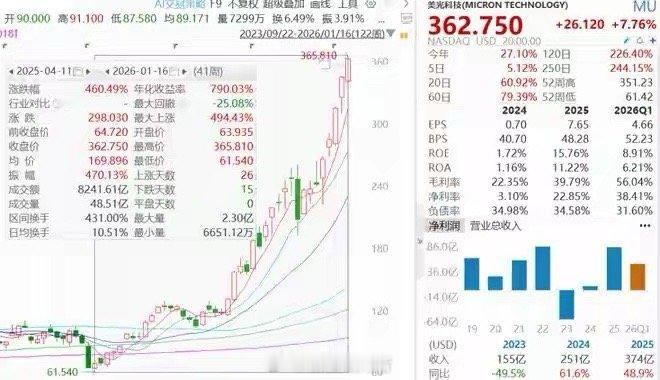 周五(1月16日),美股芯片股逆势走强,其中美光科技大涨7.8%,总市值首次突破4000亿美元(约合人民币2.84万亿元)。从去年4月至今,该股累计涨幅超460%,近120个交易日上涨226.4%,年内涨幅已达27%。同日,闪迪、希捷科技盘中股价创历史新高,博通、应用材料、阿斯麦等收盘涨超2%;英特尔虽下跌2.8%,但今年以来累计涨幅仍超27%,其将于1月22日美股收盘后发布的第四季度财报备受市场关注。A股芯片板块同步走强,1月16日存储芯片概念午后持续拉升,佰维存储、江波龙均涨超10%,股价刷新历史新高。调研机构Counterpoint Research指出,存储芯片市场已进入“超级牛市”,行情甚至超过2018年历史高点,预计2026年一季度价格将飙升40%~50%,二季度或再涨约20%。此外,国内芯片领域近期频传突破:• 中核集团1月17日消息,我国首台自主研制的串列型高能氢离子注入机(POWER-750H)成功出束,核心指标达国际先进水平,攻克了功率半导体制造链关键环节,助力高端装备自主可控。• 科技日报16日消息,西安电子科技大学团队通过技术创新,将半导体材料粗糙的“岛状”界面转化为原子级平整的“薄膜”,使芯片散热效率和器件性能实现突破性提升。(声明:文章内容仅供参考,不构成投资建议。投资者据此操作,风险自担。)