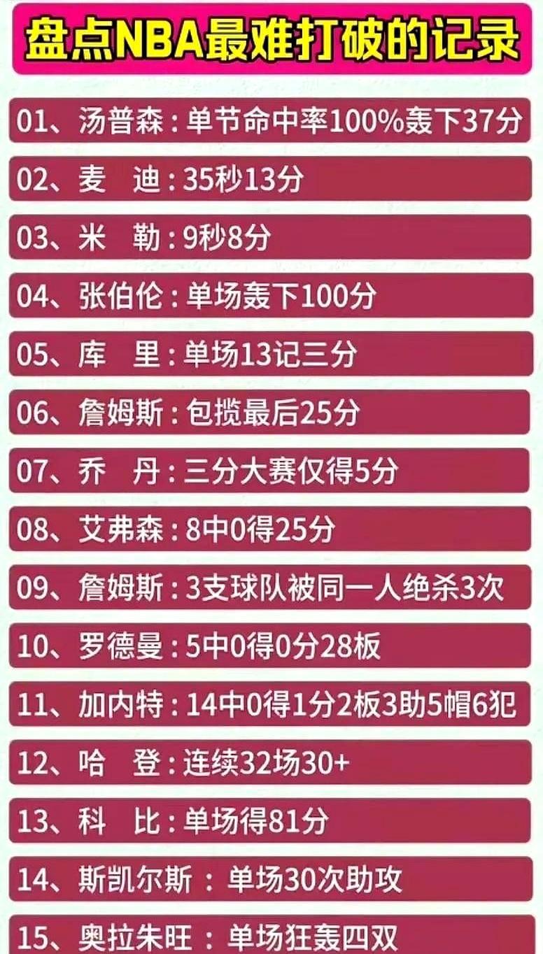 单场100分,够你打一辈子 1962年3月2日,费城球馆记分牌停在169:147,张伯伦把100写进历史。63投36中、28罚28中,全场没人敢换他下去,对手也懒得包夹——那会儿没三分线,节奏慢得像散步,他靠身高硬吃。现在?一节12分钟,主力最多打38分钟,教练第一个喊停。想刷100分,得全队陪你玩,还得对面不犯规战术,梦里才有。 科比81分算最接近,也差19分。换算成今天,你得扔15个三分外加20次罚球,还得零失误。联盟场均110分的年代,一个人砍全队九成,听着就离谱。 我翻完近五年数据,70+都稀有,80+绝迹。球迷老幻想哪天出个怪物,其实怪物也得睡觉。记录这玩意,越老越值钱,张伯伦那场球票现在拍卖价能换套别墅,可分数还在那儿,纹丝不动。