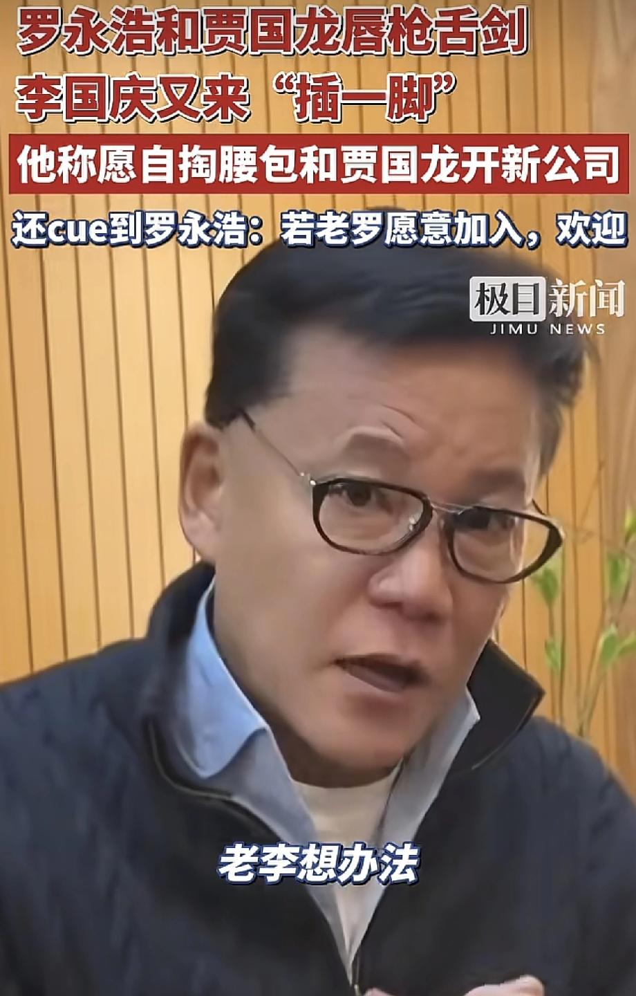 贾国龙和罗永浩他们的账号被禁言了。因为他们两个在网上打口水战,贾国龙是硬刚罗永浩,指控罗永浩污蔑诽谤,要求他道歉赔偿。罗永浩回应说,你忍忍吧。光靠打口水仗有啥用?能赢回消费者对你的信任吗?两个人的口水仗。相当于在线约架。所以两个人的账号被禁言了。没想到,就在罗永浩和贾国龙唇枪舌剑时,李国庆又来插上一脚。看似火上浇油,其实有点像拉偏架。他说,他愿意和贾国龙开新公司,自掏腰包,只要是给他足够的管理权就行。有网友就在线问。可以给你管理权,但是你能保证公章不被抢吗?
