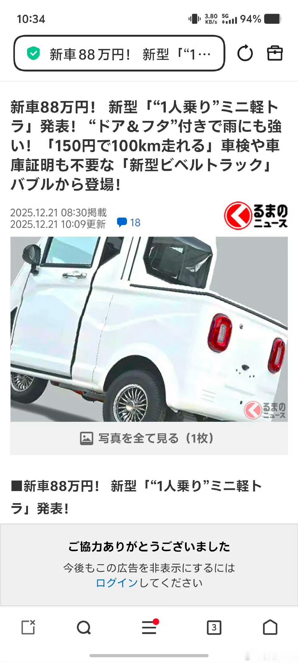 在日本,三蹦子,货拉拉,老头乐如雨后春笋般冒出头来。三蹦子,由原丰田工程师谷中壮弘主导设计,售价169万日元,可以买个高配K-Car,有点小贵。货拉拉,日本人打算营销为露营神器,由汽车露营公司买来改造,大概率是奇瑞开瑞海豚改的,43度电池的纯电,买来出租的。链条是露营公司平行进口买回来,然后改装过后,出租。老头乐,性价比最高的一个,仅售88万日元,150日元就可以跑100公里,不用车检,不用车库证明老头看完,两眼放光。大v聊车坂道说日系车全是乐子