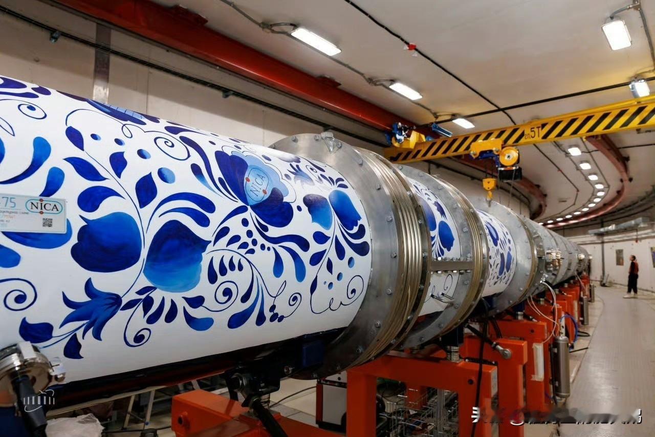 俄罗斯质子与重离子超导对撞机管道表面的格热利彩绘装饰(Гжельская роспись)—— 由莫斯科州杜布纳市联合核研究所完成。 此案例堪称俄罗斯传统工艺美术与当代前沿科学装置的完美融合典范,体现了文化遗产保护与高科技研发的协同创新价值。