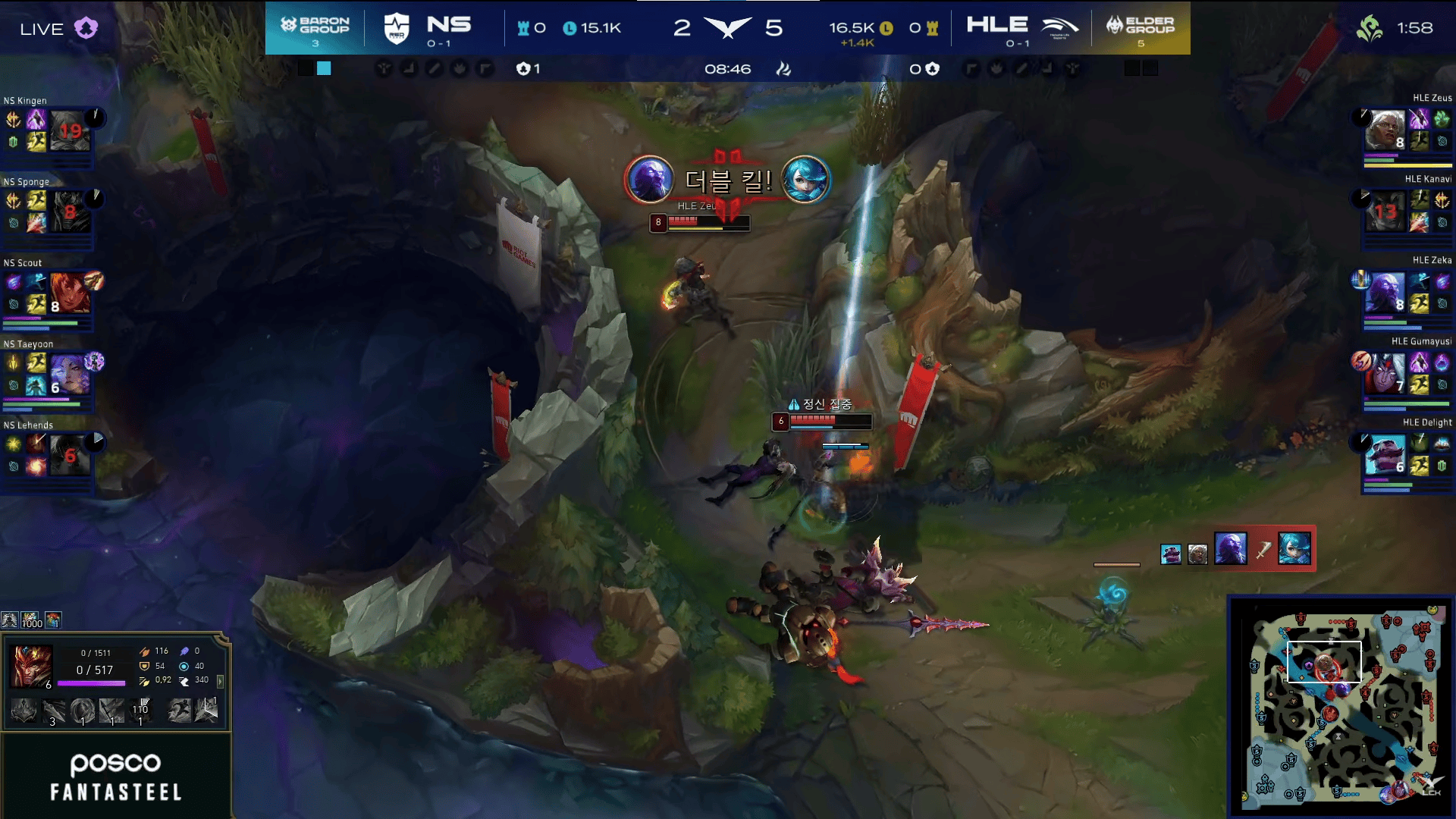 比赛第8分钟,HLE打出一波1换3,此后HLE一度取得前期优势。