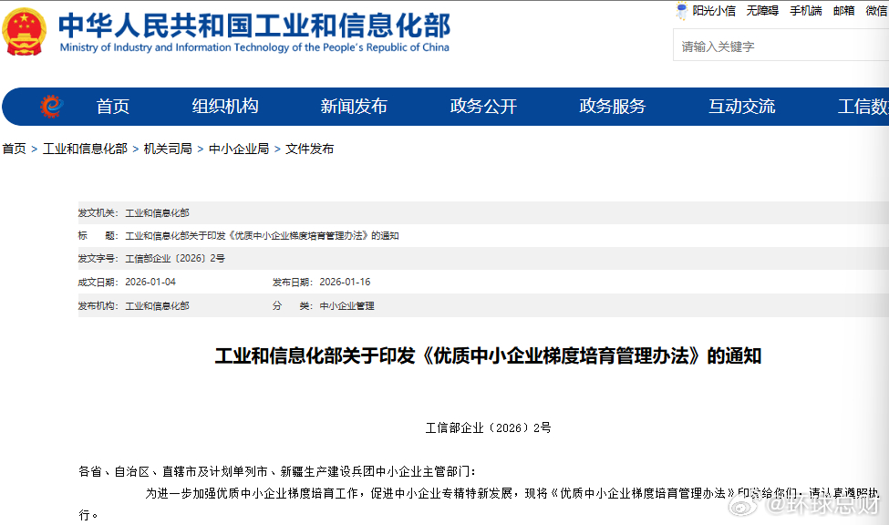 首次将科技型中小企业纳入梯度培育范围 【工信部重磅发文,科技型中小企业首纳梯度培育体系】工业和信息化部正式修订发布了《优质中小企业梯度培育管理办法》以下简称《办法》,目的在于进一步完善认定标准与管理服务机制,更好地发挥优质中小企业在示范带动和固基强链方面的作用。该新规将于2026年4月1日起正式实施,对现行中小企业培育体系进行了全面升级,其中最引人注目的变化在于,首次将科技型中小企业正式纳入梯度培育范围,构建起包含科技和创新型中小企业、专精特新中小企业、专精特新“小巨人”企业在内的完整金字塔梯队。《办法》规定,未来的优质中小企业体系将形成清晰的三个层级。处于最基础层的是科技和创新型中小企业,这类企业具有较高的专业化水平、较强的研发创新能力和发展潜力,被视为优质中小企业的基础力量。第二层级为专精特新中小企业,这类企业已实现专业化、精细化、特色化发展,具备较强的创新能力和较好的质量效益,是优质中小企业的骨干力量。位于金字塔顶端的是专精特新“小巨人”企业,它们位于产业基础核心领域和产业链关键环节,创新能力突出、掌握核心技术、在细分市场占有率高且质量效益优,是优质中小企业的中坚力量。《办法》不仅扩大了培育的覆盖面,还在认定标准上进行了大刀阔斧的改革。新规适当提高了门槛要求,例如将专精特新“小巨人”企业的营业收入门槛提升至5000万元以上,研发费用提升至近两年合计不低于1200万元,并要求拥有4项以上Ι类知识产权。同时,认定标准中创新性地引入了“中小企业专精特新发展质量评价得分”,要求专精特新中小企业和“小巨人”企业的得分分别达到50分和60分以上,以引导地方和企业更加重视发展质量的提升。在管理机制方面,《办法》强化了全过程动态管理。工信部将建设优质中小企业梯度培育平台,搭建企业数据库,通过数据互通共享减轻企业填报负担。各级主管部门将建立健全主动发现机制,常态化挖掘产业链供应链、股权投资、知识产权等维度的潜在优质企业。对于已认定的企业,实施有效期为3年的动态管理,对于发生重大安全事故、数据造假或严重失信的企业,将坚决取消认定。分析人士指出,该《办法》的修订出台是国家推动中小企业向“专精特新”方向转型升级的重要里程碑。将科技型中小企业纳入培育体系,有利于从源头上挖掘和培育具有创新潜力的初创期企业,为产业链供应链的安全稳定储备更多力量。提高认定标准并引入质量评价体系,则是为了打破过去部分企业重申报、轻维护的怪圈,确保“金字招牌”的含金量。这一政策导向将倒逼中小企业加大研发投入,深耕细分领域,通过走专业化、精细化道路来提升核心竞争力。网购4J车厘子2J都不到(环球网财经 文馨)