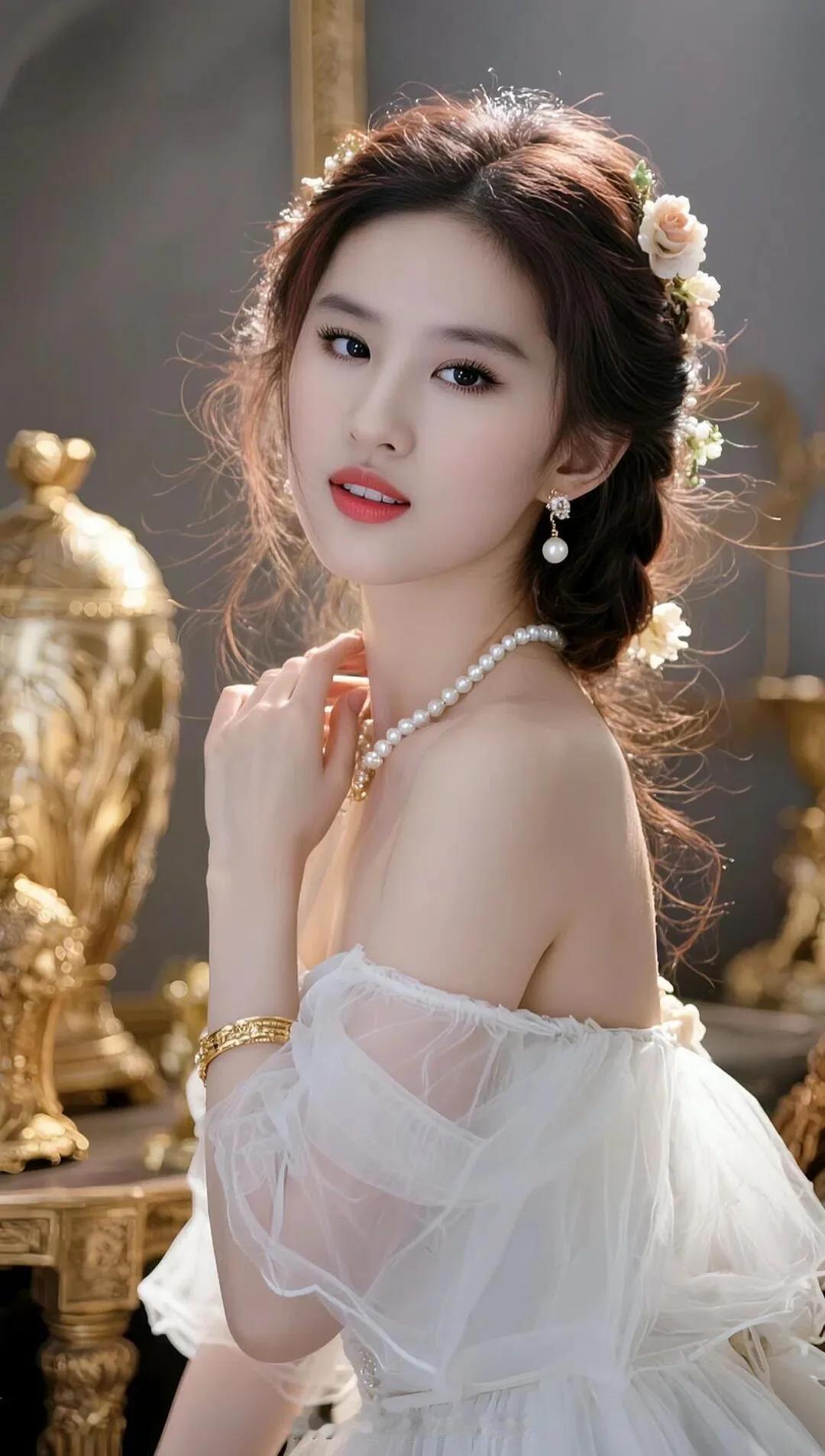 优雅白裙少女,精致的刺绣与珠宝点缀,尽显高贵气质。