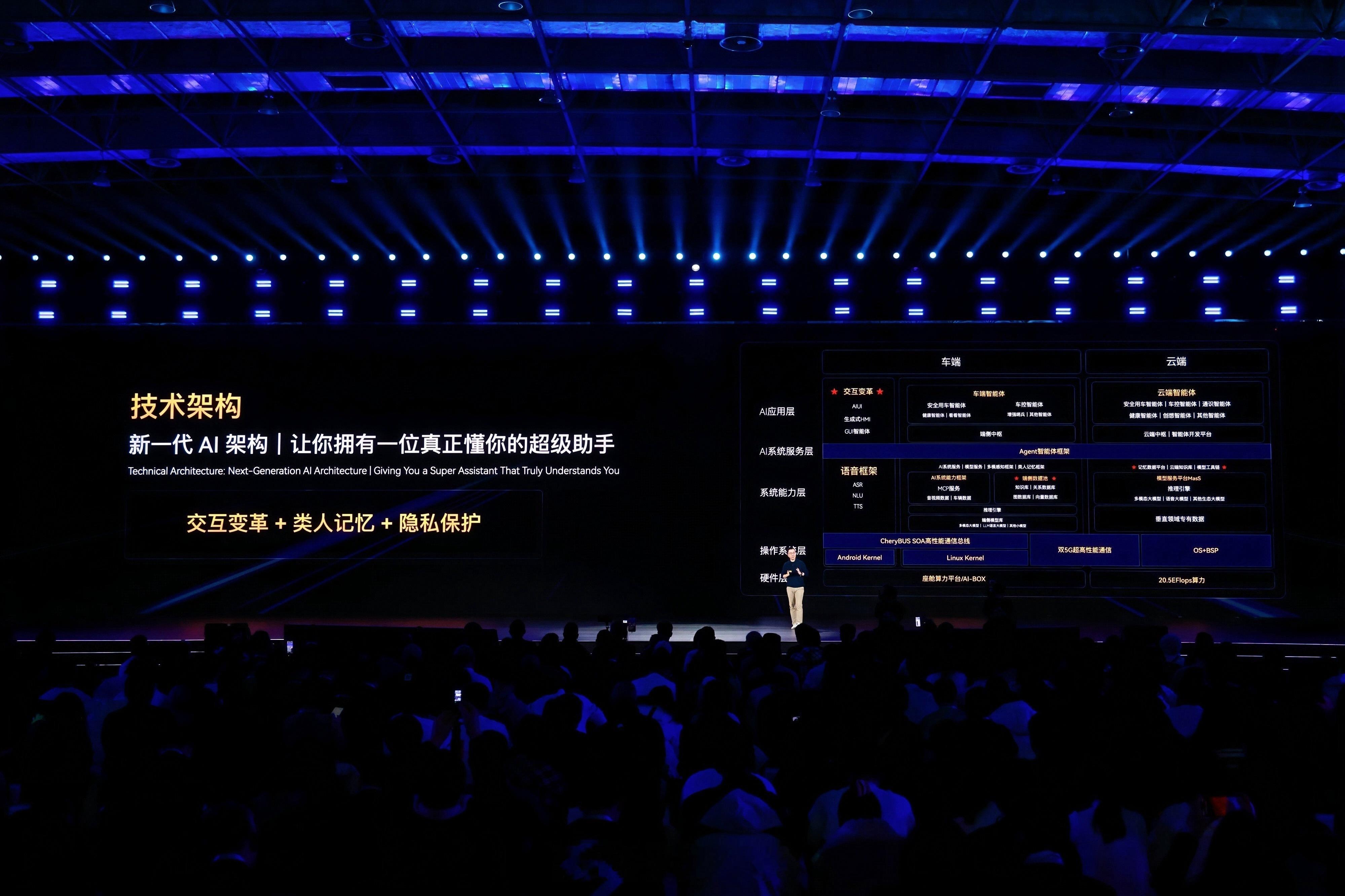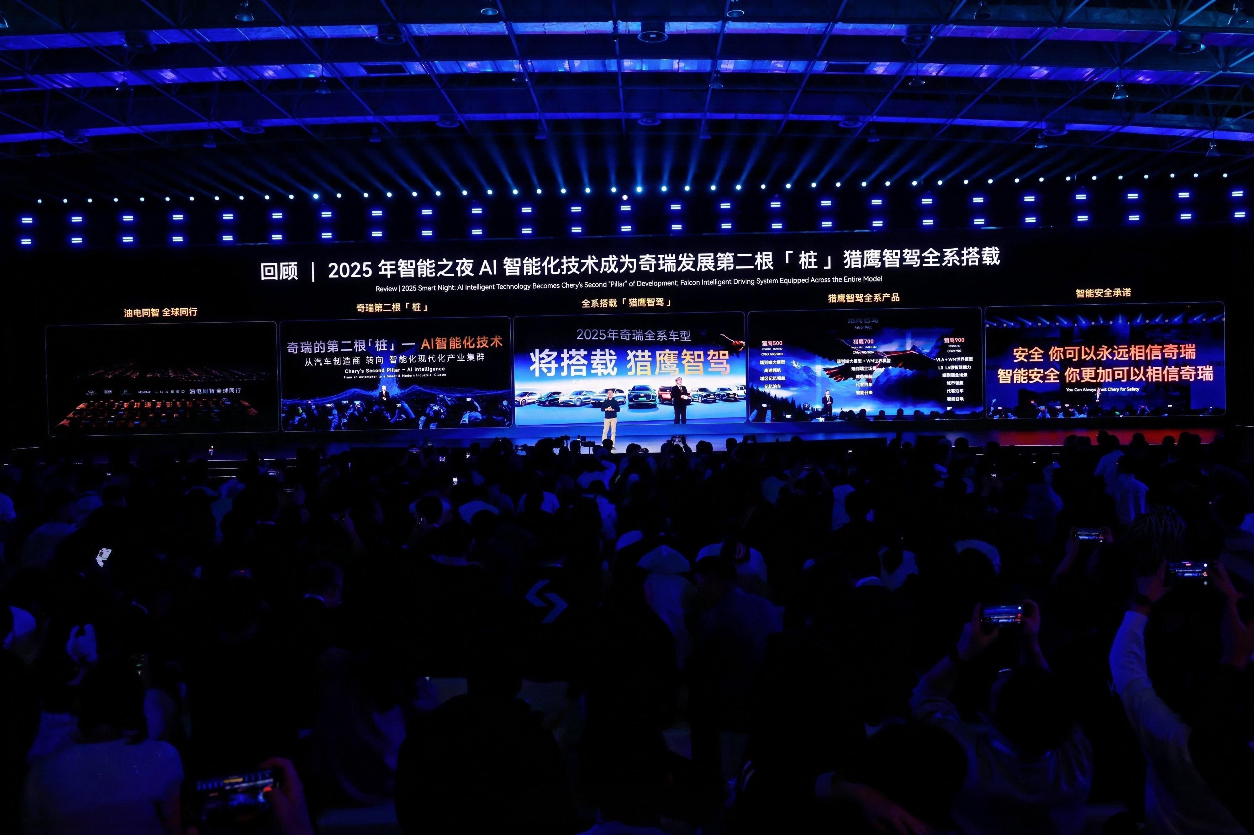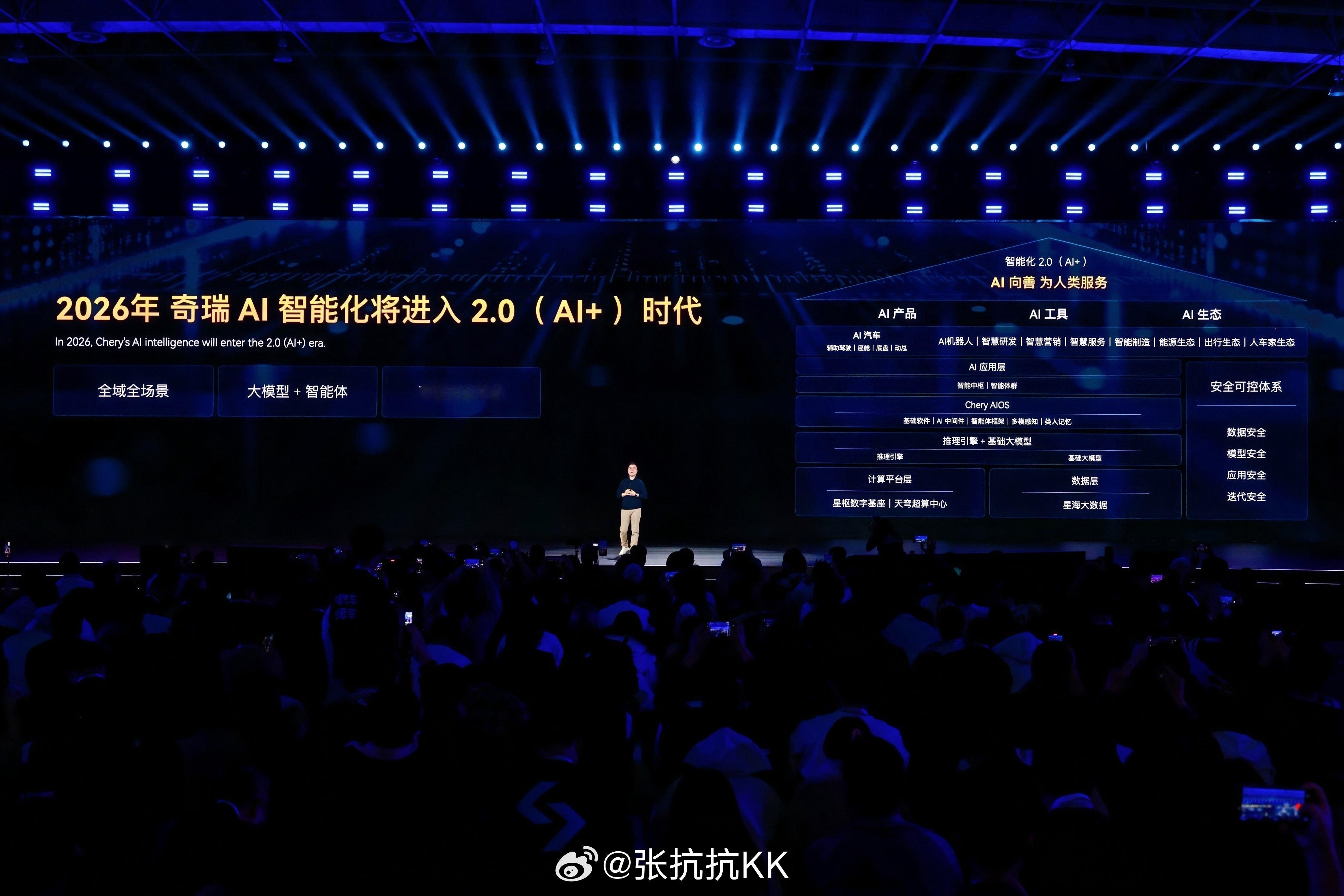 1月17日,奇瑞在安徽芜湖举办「科技有AI 2026奇瑞汽车AI之夜」,把过去二十多年“闷声做事”的智能化成果,一次性摊开。延续之前的“不客气”口号,这次奇瑞的口号是“奇瑞的AI要继续不客气”。另外提到了20多年的智能化成果,是从最早那台“会说话的QQ”算起的。具体来说,就是AI的智驾与智舱,再给原有的整车技术体系加上AI,比如• 猎鹰智驾:500/700/900三套方案并行,覆盖从入门城区NOA到L3/L4级方案,燃油、电混、纯电统一架构• 灵犀智舱:生成式HMI + 类人记忆 + 量子级隐私防护,核心载体是AI智能体「小奇同学」• 飞鱼AI数智底盘:通过环境预判与驾驶风格识别,实时调整悬架与控制策略• 鲲鹏AI动力:AI能量管理覆盖全温域、全场景,越开越省、越开越顺• 墨甲机器人·墨茵:人形机器人已量产交付,并通过欧盟CE认证,走向真实应用场景。
