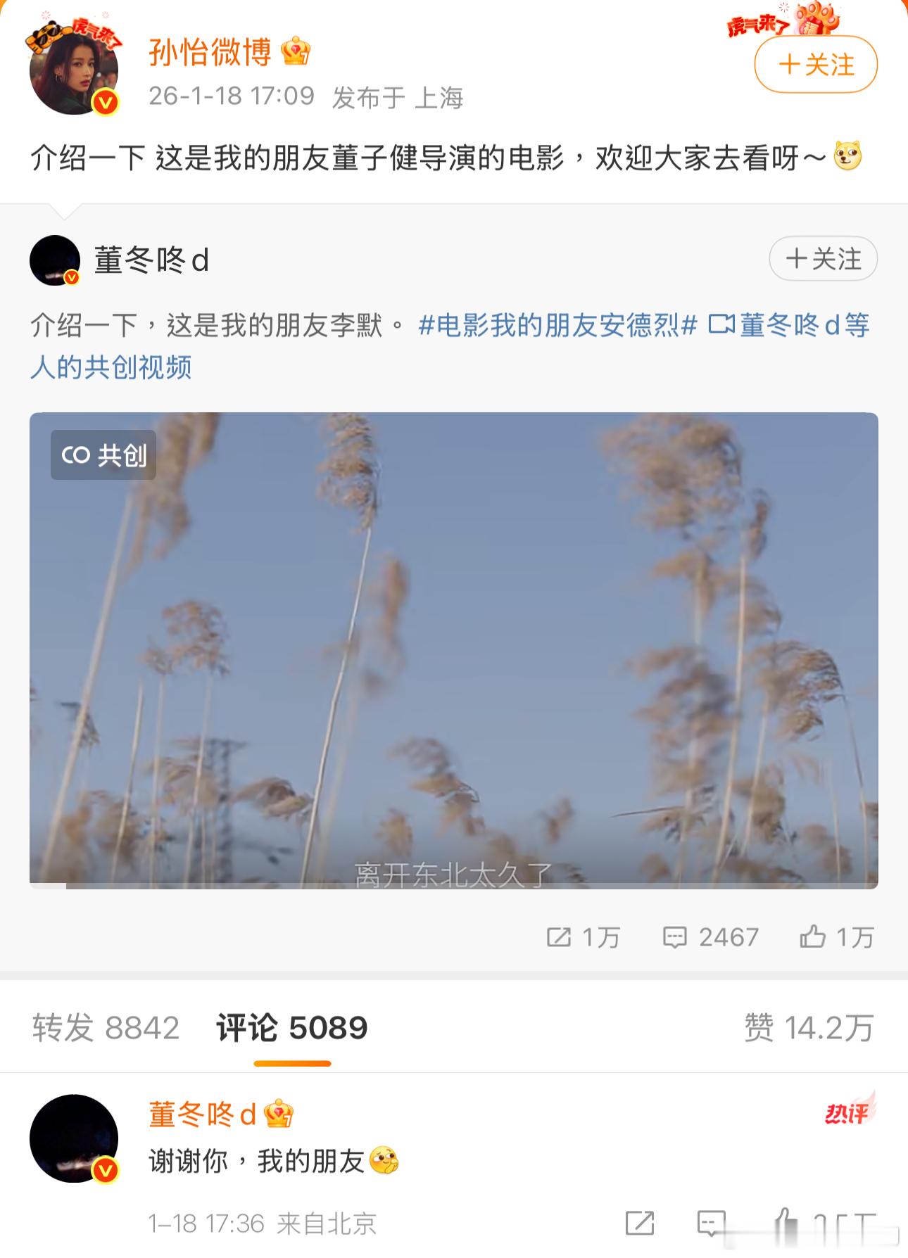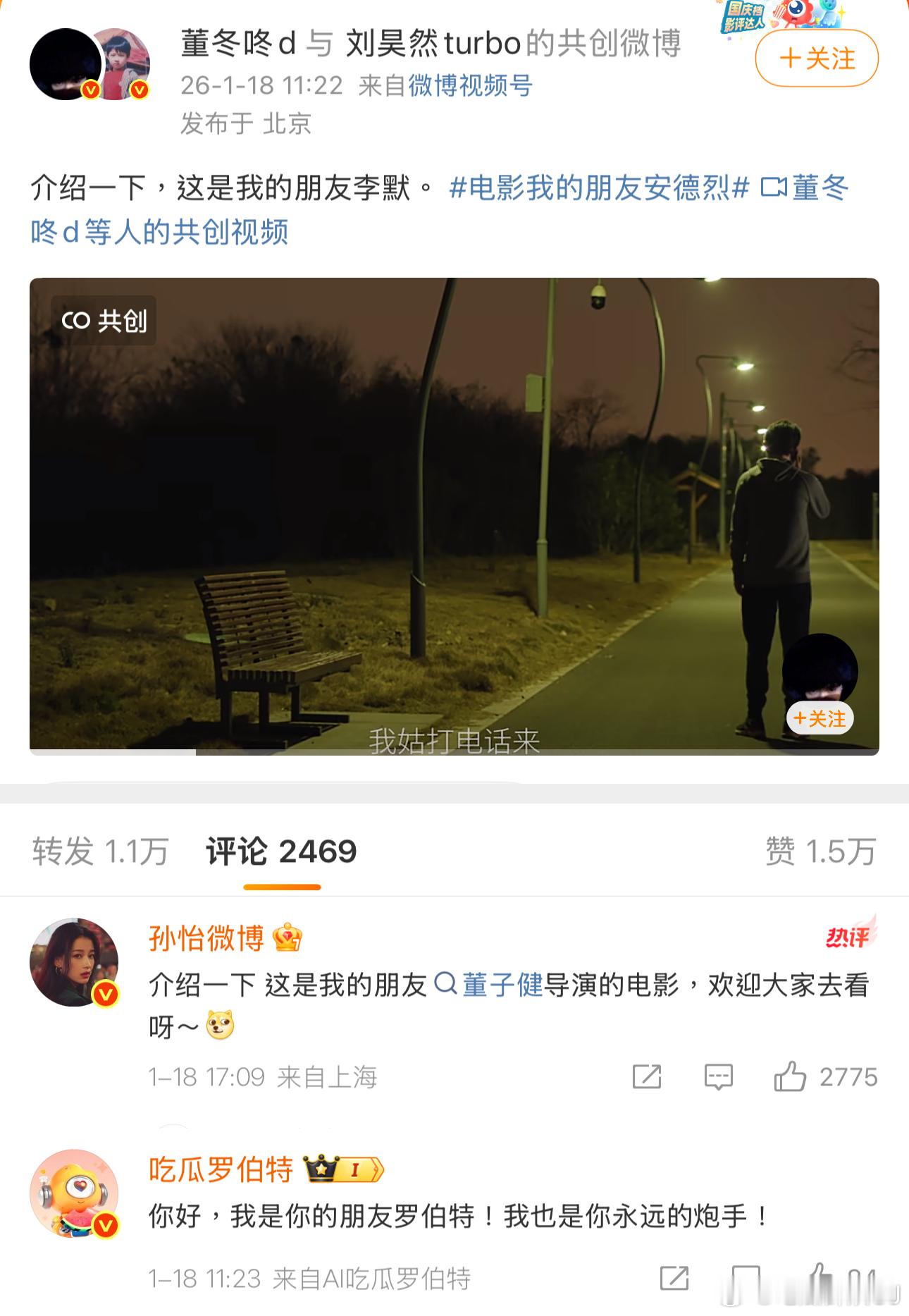 孙怡 我的朋友董子健董子健当导演,人脉圈全出动了,除了满分好友刘昊然当了男主又跟着跑宣传,前妻孙怡也转微博帮忙宣传,连罗伯特都要追在屁股后面当他的好朋友。