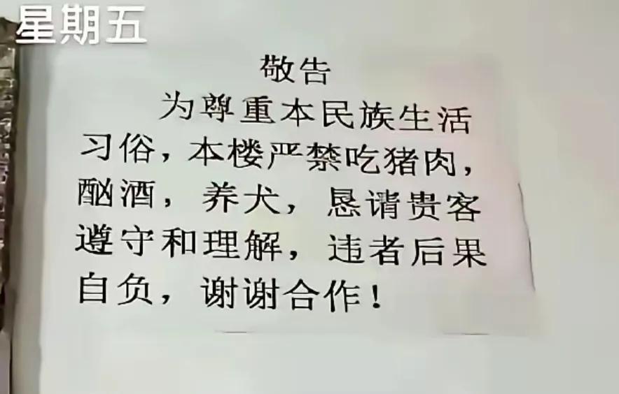 几个印度裔在楼梯口贴张敬告 为尊重本民族生活习俗,本楼严禁吃牛肉!那么不吃猪肉的民族该如何应对印度裔,是尊重印度裔,还是不理印度裔? 这张敬告完全没有尊重其他民族,自己不吃猪肉,也不许别人吃猪肉。这属于霸权,普通人只有两个选择,一是屈服于霸权,而是搬走。印度人则选择以其人之道,还治其人之身,导致印度人经常与穆斯林互殴,在印度,印度人通常占据人数优势。