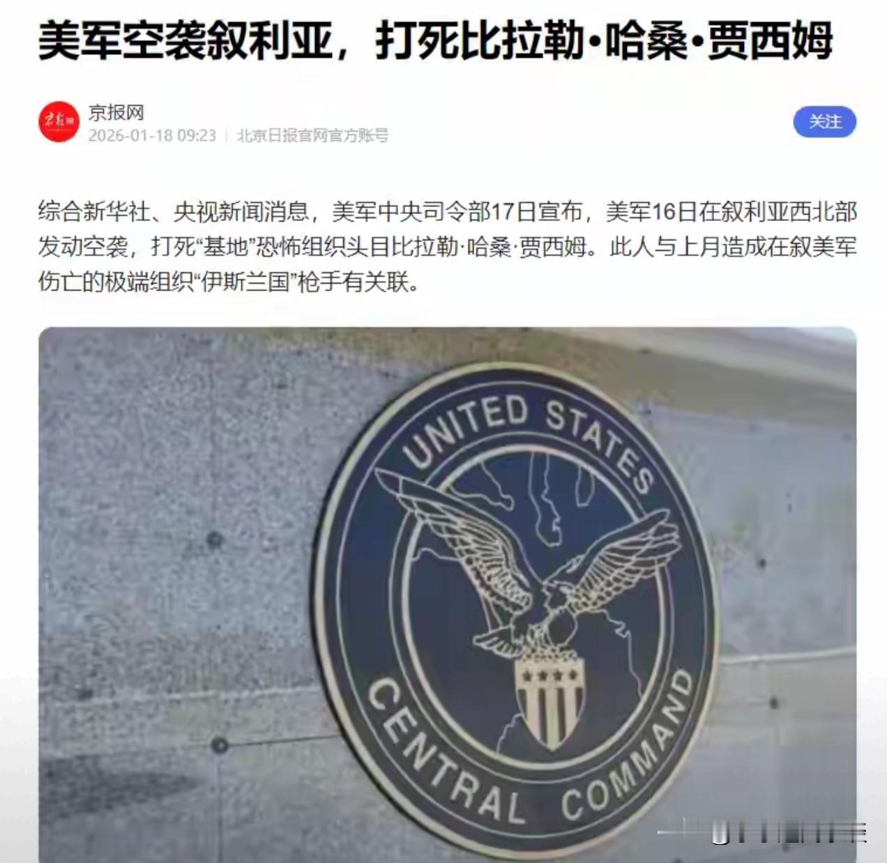 美军发起大规模空袭,叙利亚北部又成大国政治牺牲品!!! 1月16号深夜,叙利亚西北部的夜空被炸成碎片,美军说只杀了一个叫比拉勒的基地头目,可炮弹不长眼,民房跟着塌,孩子哭到失声。六天前他们才炸过一轮,代号鹰眼打击,说是为死去的三名美国人报仇。叙利亚过渡政府却嘀咕:凶手可能不是IS,而是自己人。真相像被炮弹扬起的尘土,谁也看不清,唯一确定的是,叙利亚又成了大国掰手腕的垫背。 美军说精准打击,可精准能把孤儿院和弹药库分开吗?特朗普前一秒还嚷着要打伊朗,下一秒突然安静了,谁按了暂停键? 沙特说别用我的天空,以色列说别把我的城市变成火箭靶,美国军方说又也打不赢撤也撤不掉。于是,叙利亚继续替全世界挨揍,像班里最瘦小的同学,被两帮壮汉推来搡去,连哭都要小声。 世界和平不是特朗普的沉默不是良心发现,是算盘珠拨明白了:打伊朗等于往自己脚面扔手雷,炸叙利亚却像打免费沙包,零成本还能秀肌肉。于是,弱国继续流血,强国继续拍照发推特。 叙利亚的夜空还会不会再亮?特朗普的下一颗炸弹又会落向哪里?