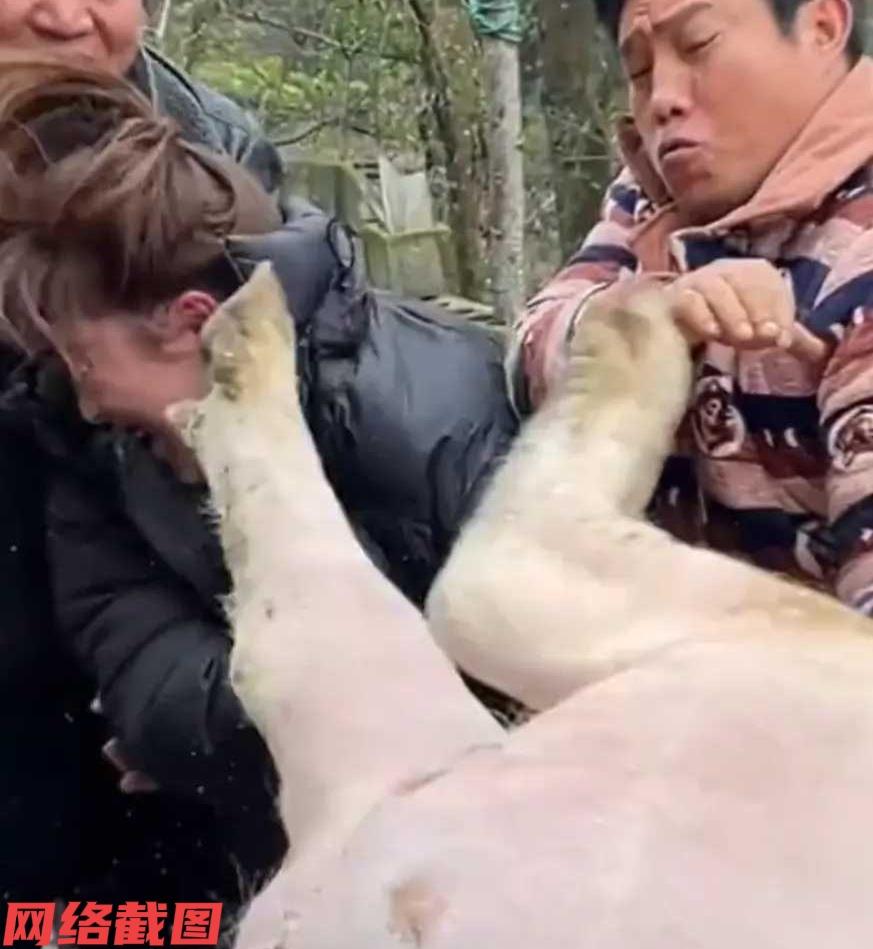 贵州安顺有女子回老家正赶上杀年猪。 这时女子看到现场人手不够,决定自己上前帮忙