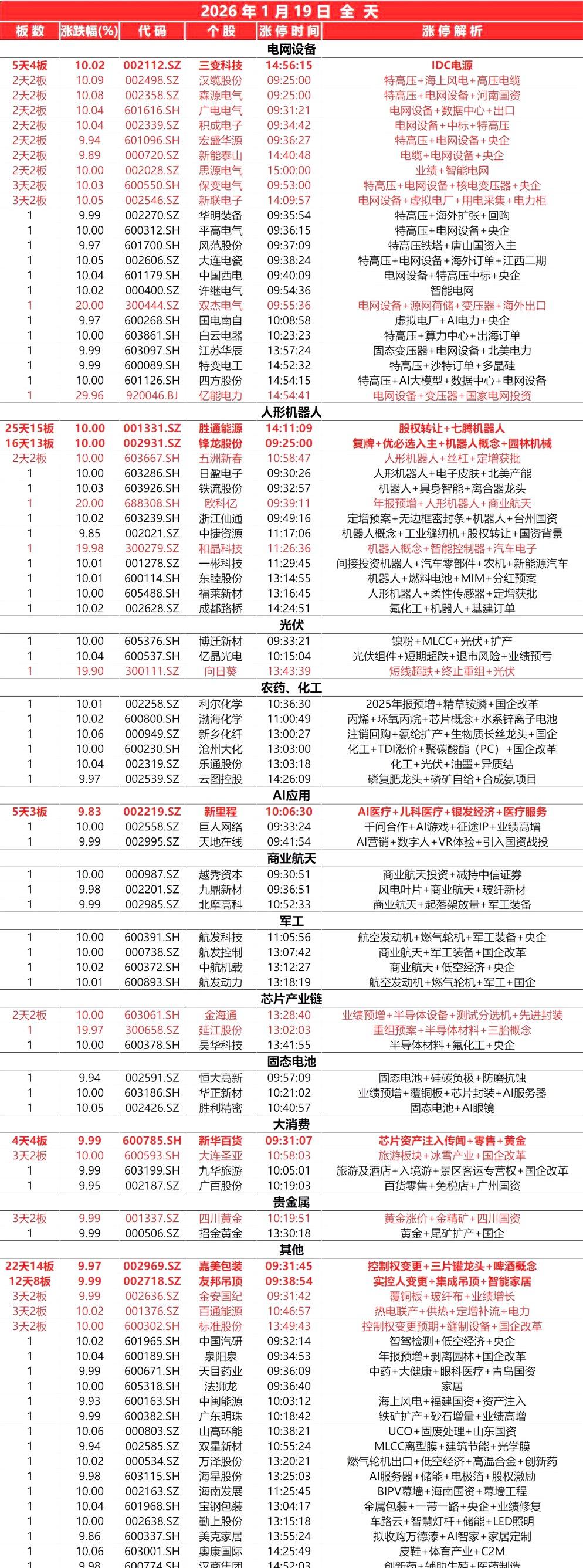 1月19日, 全天封板复盘。