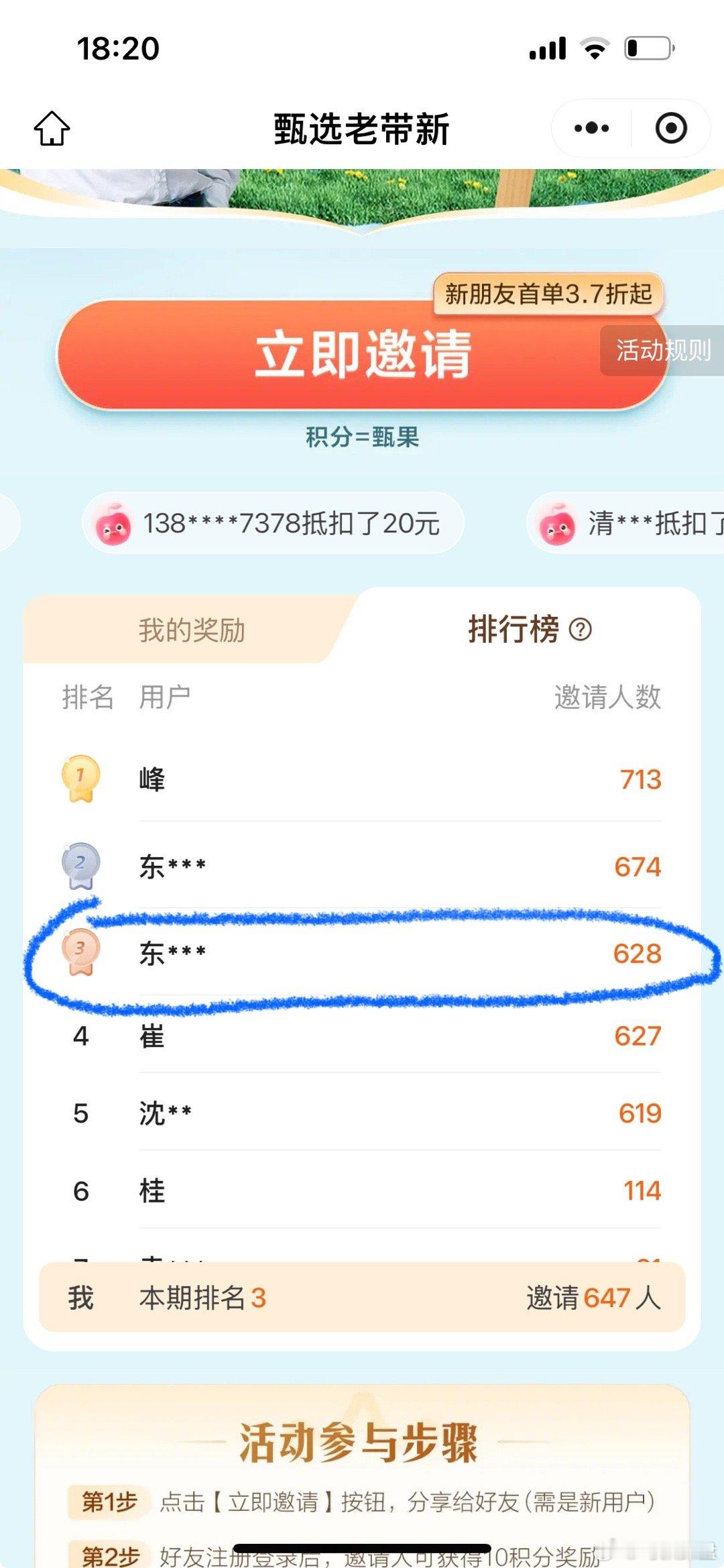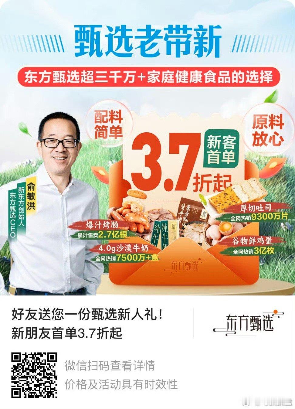 最新排名,我进入第3名了,今晚截止,再发一次微博拉票:只要没用过过东方甄选小程序的,只需要用这张图邀请二维码登陆一次就算邀请成功了,能不能去免北京跟我的偶像俞老师吃饭靠你们了。感谢大家的帮忙,尽力了🙏作为东方甄选长期老股东,还能顺便帮到东方甄选推广新用户也很开心。