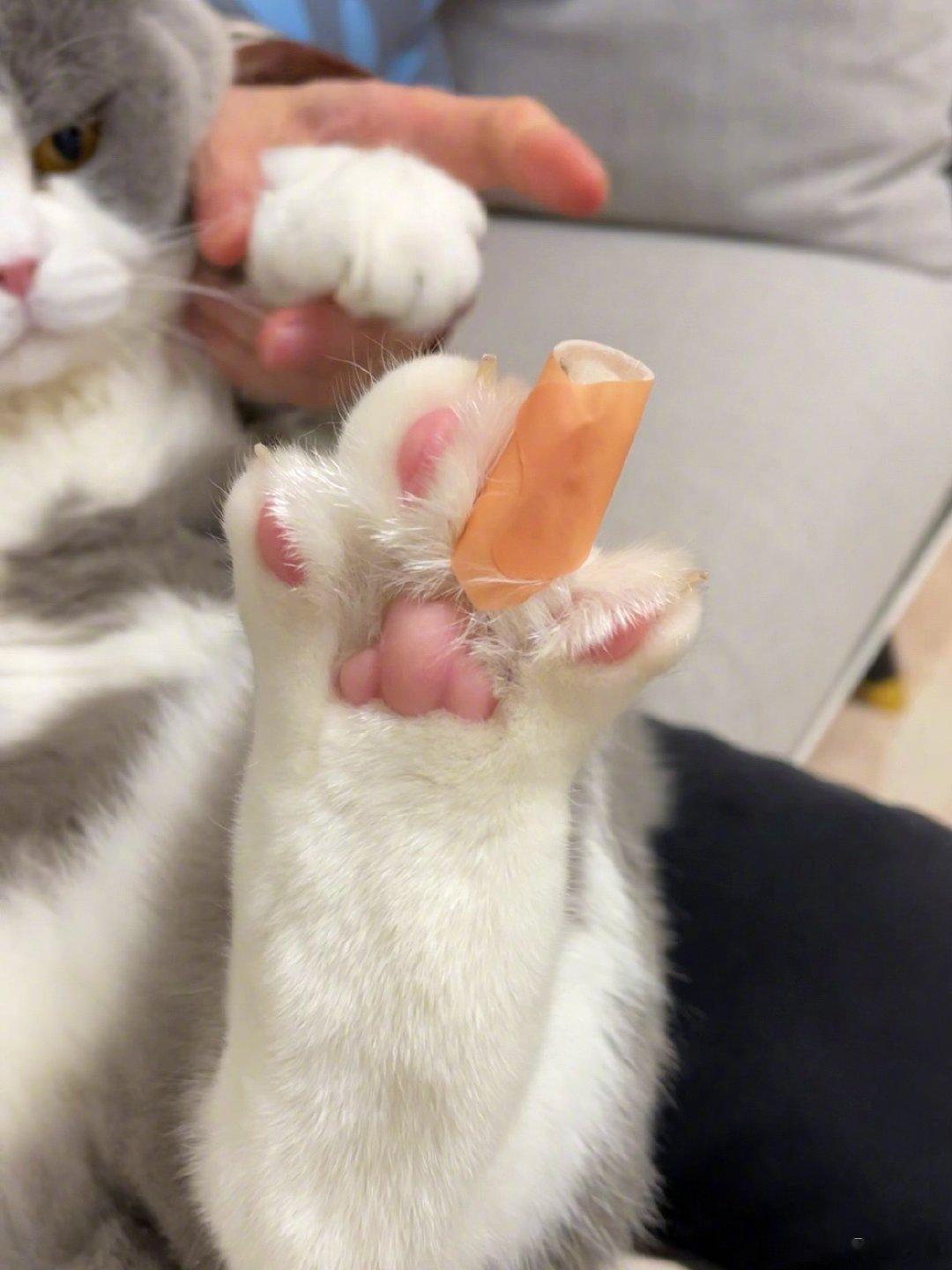 朋友你是认真的吗?这么包扎合适吗?一个网友家的猫打破了一个花瓶,脚掌被玻璃给划伤了,网友怕猫咪后期感染,于是就拿创可贴给包起来了,就是这个看上去太搞笑了吧。