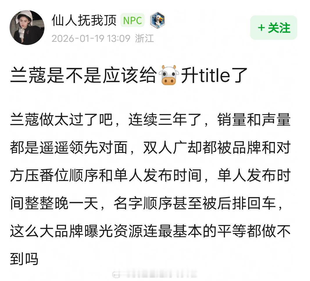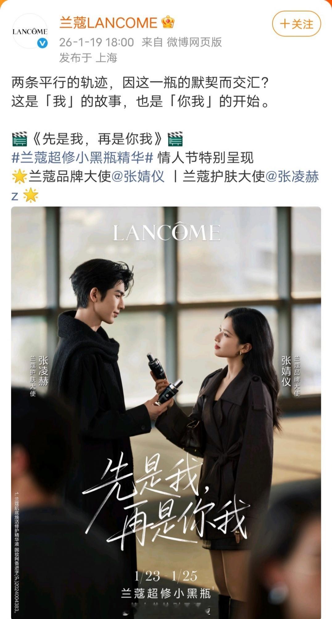 张婧仪张凌赫兰蔻情人节物料,引起网友对两人不同待遇的讨论。一个品牌大使,一个支线大使,title高的肯定在前吧,张凌赫的美妆线在别的商务,护肤大使已经是最高title了。张凌赫张婧仪 兰蔻