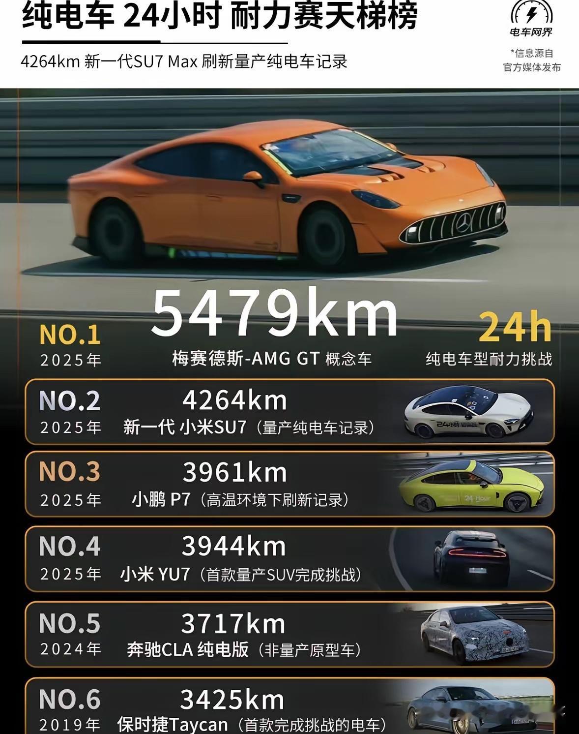 电动新能源车24小时耐力挑战赛,是考验的车辆什么性能,我想了一天,终于有了一个大概的理解。 为了能在24小时内驾驶更远里程,需要突出的性能有哪些呢? 轻量化,电池能量转化率,充电功率,轮胎摩擦系数,风阻系数,自然温度。 而这些要素中,能动手脚的地方太多了。 比如,轻量化可以拆除车内座椅,拆除不必要的内饰。 电池能量转化率,可以拆除不必要的功耗设备。 充电效率,可以安装最大功率的充电桩,并提前给充电桩做好保温。 轮胎摩擦系数,完全可以换成更窄的轮胎,或者更强大的功能轮胎。 风阻系数,更简单,就是在车漆上面做文章,重新喷涂更光滑的液体漆,或者对漆面进行抛光打磨。 自然温度方面,就选择最适宜的环境,20度的天气,没风没雨,地面干燥。 对于这项所谓的挑战来说,感觉实在没什么意义,并不能证明车辆有什么过人之处。 但最重要的意义,就是能和奔驰的顶级跑车在同一个排行榜中出现,这就是最大的意义,也就是让消费者感觉,这些电动车都能比肩超级跑车了。 这也算是比较高级的营销了。