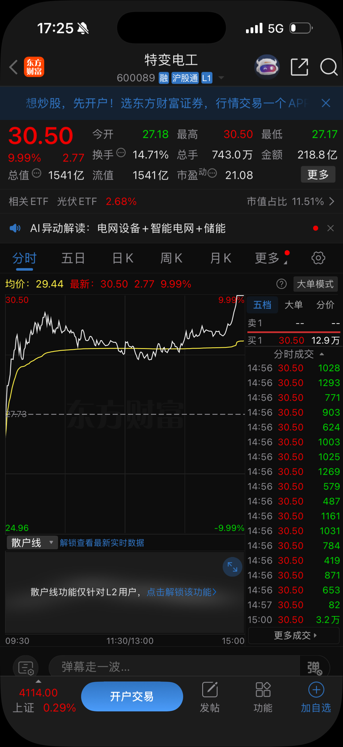 钉子哥分享的特变电工走出涨停有望继续加速行情恭喜钉子粉178!