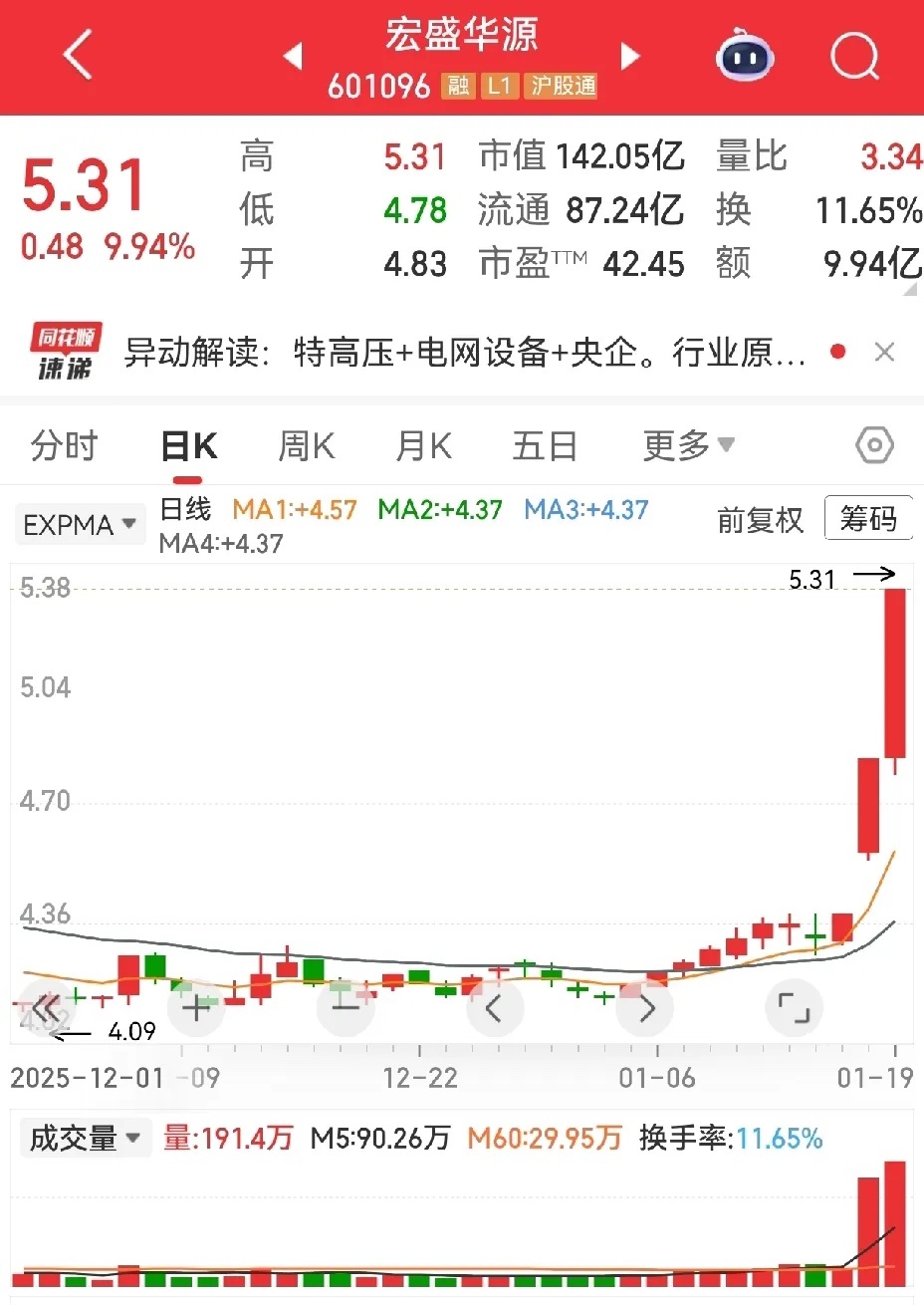 特高压有多火,看看这几位。宏盛华源,连续两天换手率10%左右,属于换手二连板。汉