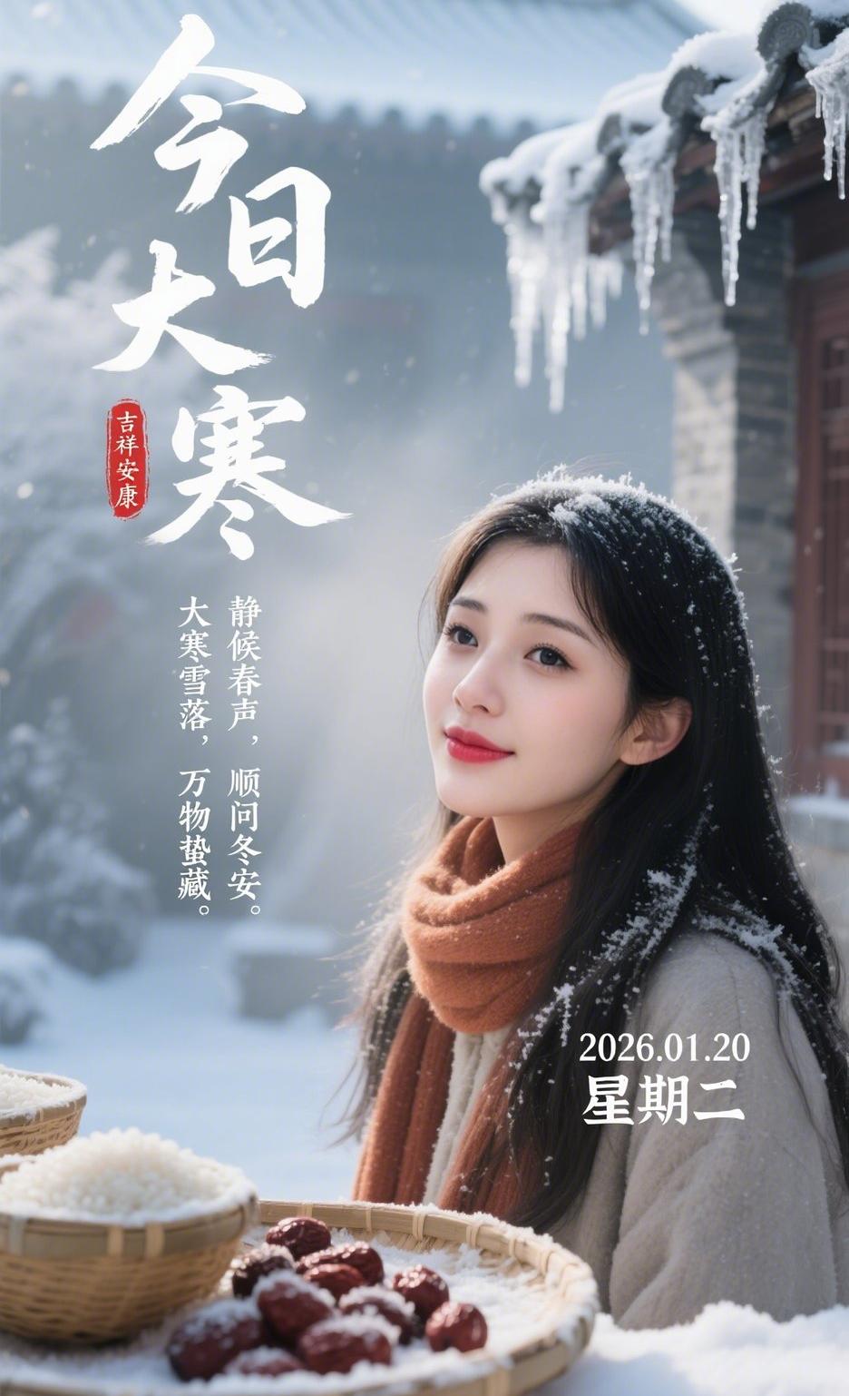 今天大寒,一年最冷的节气。 我新发布的内容被官方推荐啦!👍你也快来发布一条吧!带记录真实生活 话题,更容易被官方看见哦~❄️。 老人说“大寒冻硬土”,可你看家家厨房窗户上的雾气——羊汤咕嘟着,米酒温上了,连做腊八蒜的罐子都摆满了窗台。冷风一吹,鼻子通通,人反而精神了。 这节气妙就妙在:冷到极致时,屋里那点热气才最珍贵。就像中医说的“夏病冬治”,借一点大寒的冷,把身体里积的热、心里的躁,都悄悄化解掉。 今晚记得喝碗热汤,关门前看看月亮。古人说这时候“寒气逆极”,其实万物都在悄悄准备发芽——最冷的日子,春天已经在路上了。 二十四节气里的智慧 人间烟火暖寒冬 四九最冷的节气 四九最冷一天 冬至大寒 大寒暖身饭