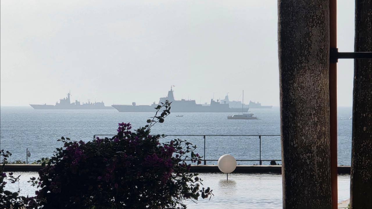 坐在窗边,静静的看着东海海边的艨艟巨舰,远远的只能看见它们的剪影,数出来有三艘大船,你能分辨都是什么型号的军舰吗?什么样的海军才能匹敌这支小小的舰队呢?大不列颠海军可以吗?