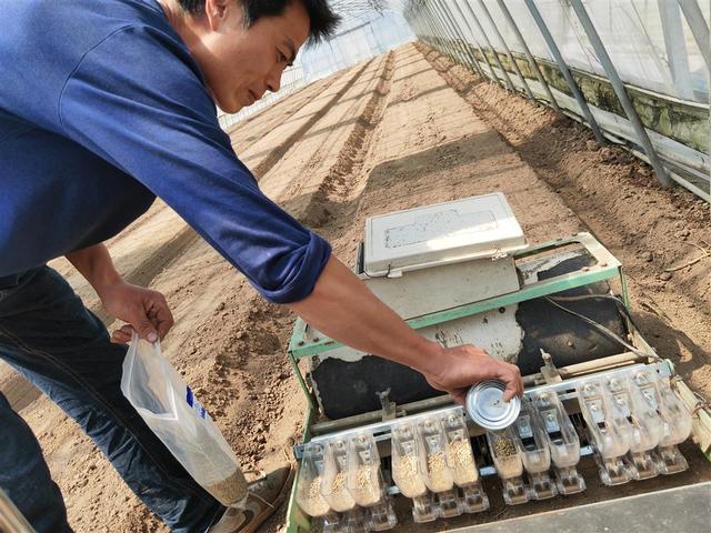 大棚内机械播种。徐瑞哲摄
