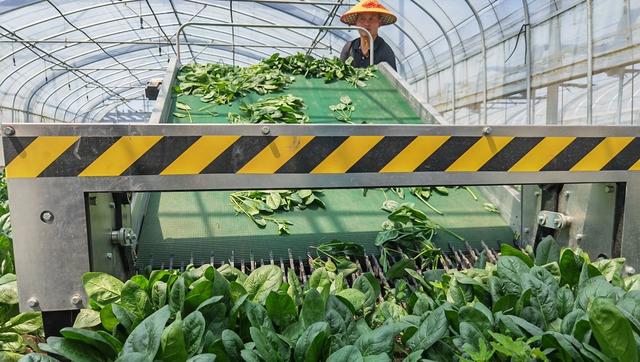 菠菜自动采收。徐瑞哲摄