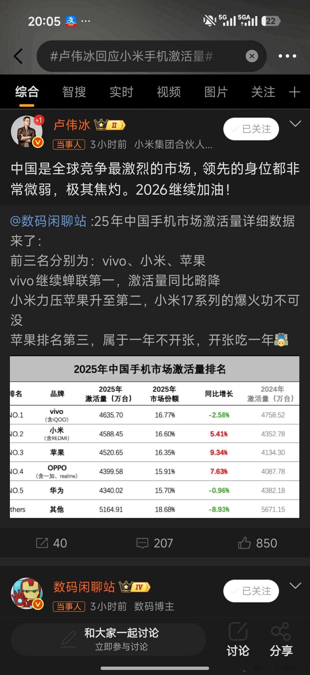 小左 1 2026-01-21 09:35 刚没事干拉了下数据,国内某米24年激活4352万,但IDC未公布他的具体出货量,理论上是低于第五的oppo是4233万的。而25年他家激活量4588万,出货量4380万,他是怎么做到连续几年激活量都高于出货量的?