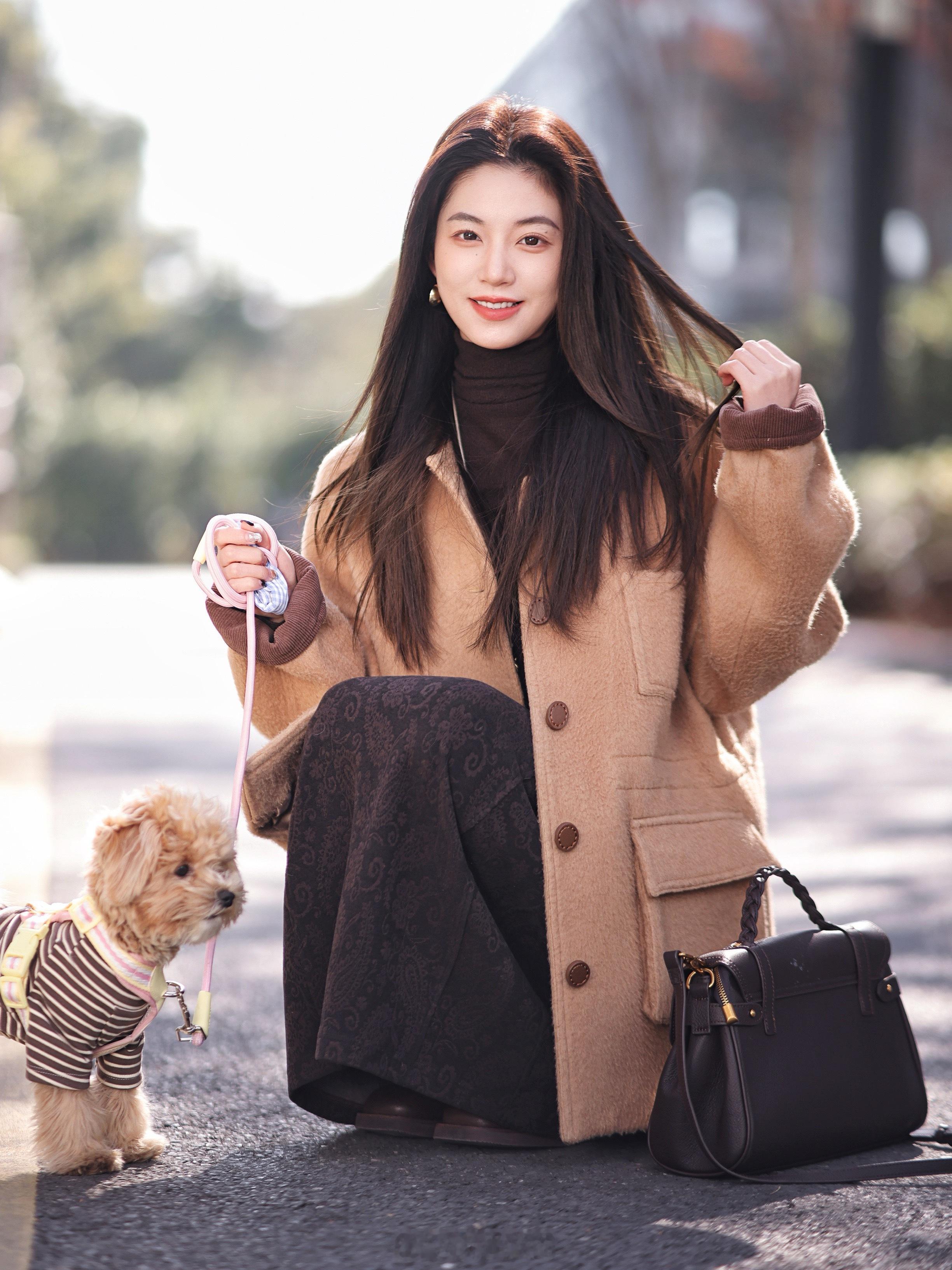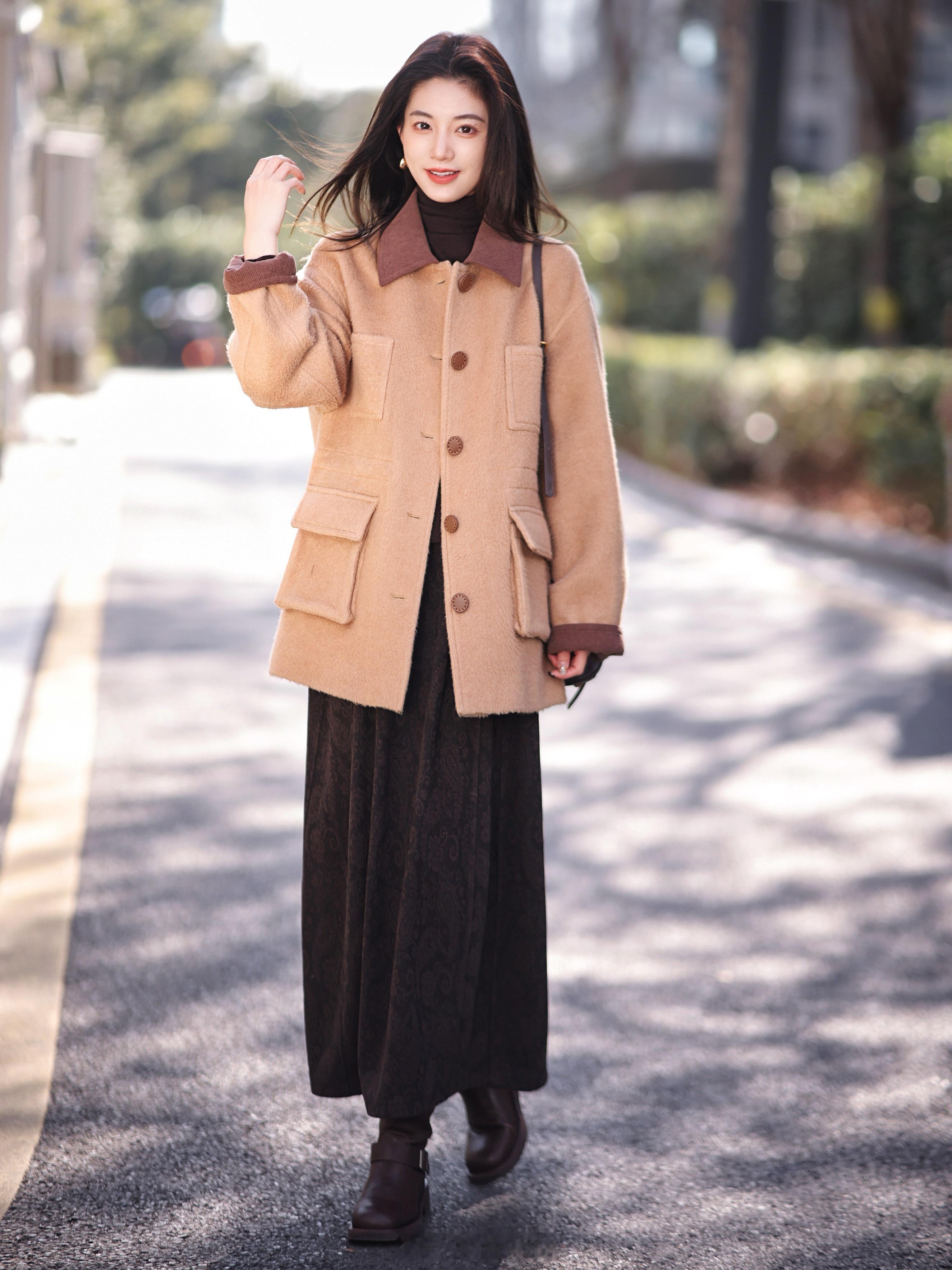 保暖届尖子生是谁?!请跟粒粒念:100骆驼绒大衣!!!撞色设计 蛮复古吧~暖和又貌美很难不喜欢吧