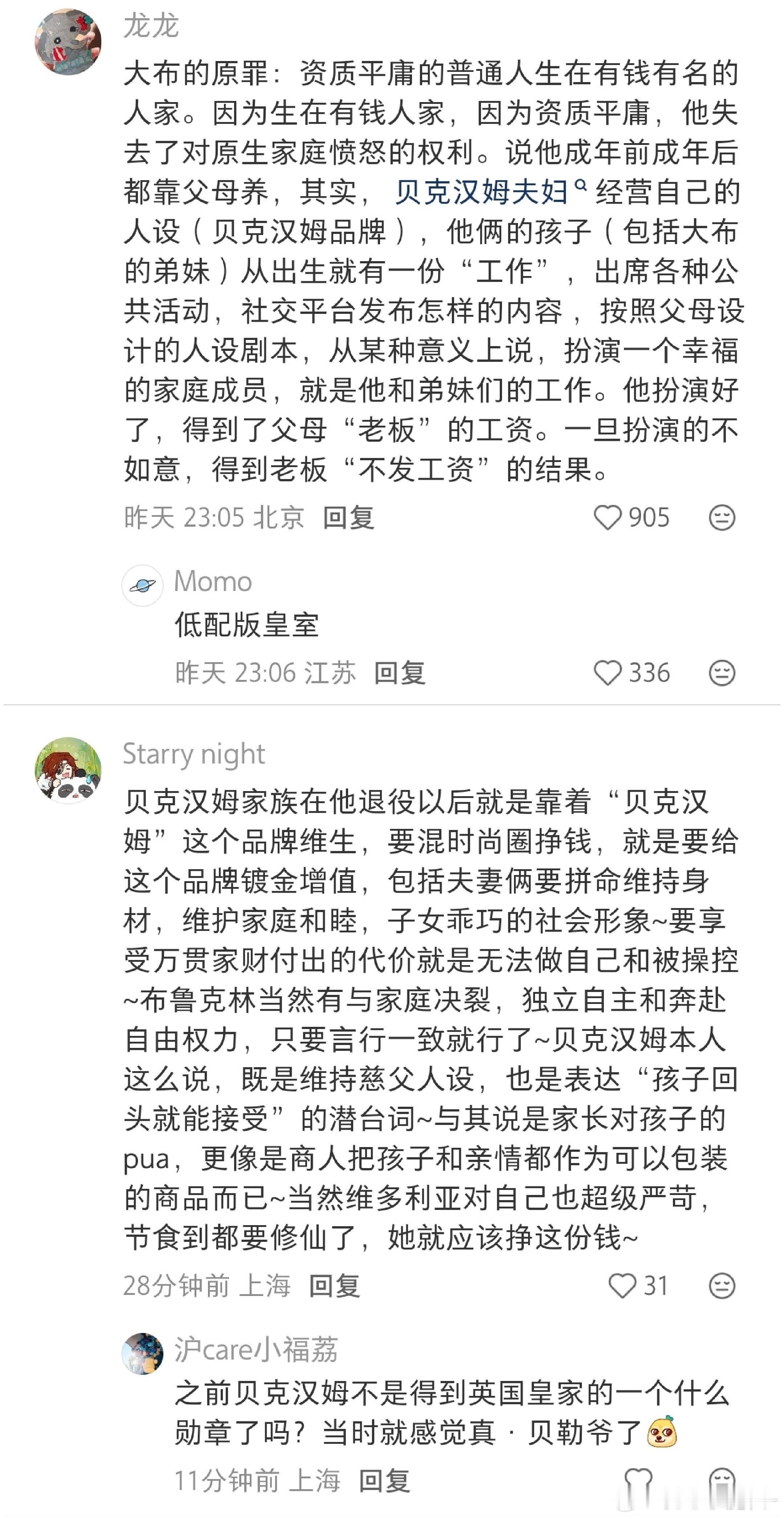 感觉老贝和大儿子决裂的真正原因是大儿子两口子借贝克汉姆这个姓氏炒作女方家虽然有钱