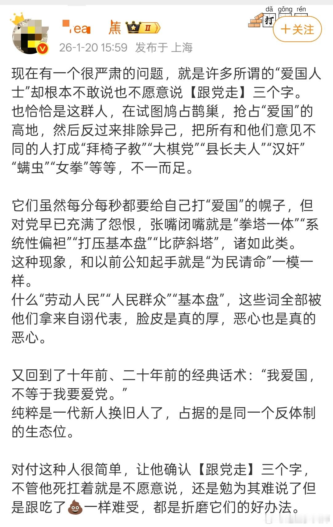 看来大V真急了,一味扣帽子,那我请问了?我这段时间发了不少:权威网站截图,权威人士发言截图,书籍摘录,文献摘录,你们这种大V呢?随口编,然后批发帽子,有时候还朝着下三路猛攻