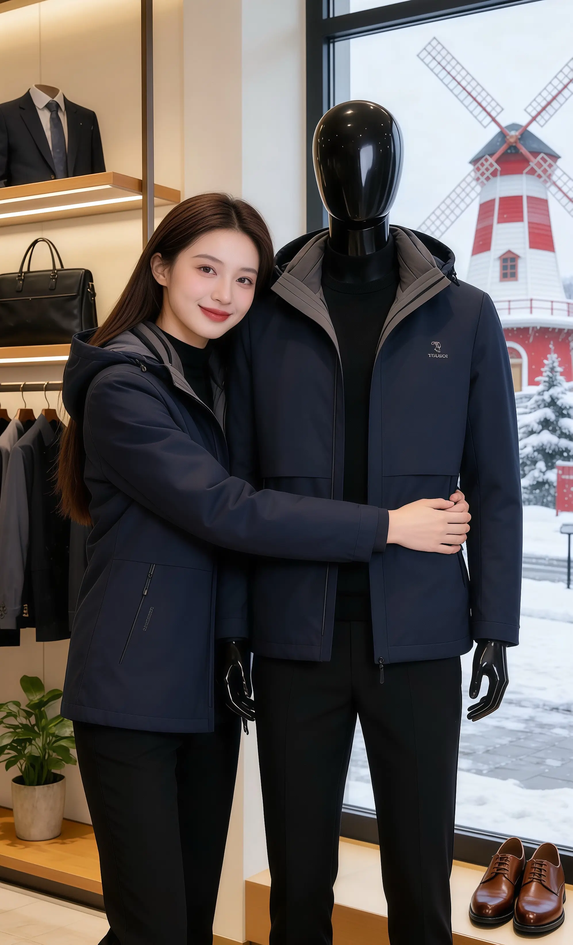 皓明走近,指尖轻碰她的袖口:「你这身穿得真好,把黑外套的沉稳和同色系搭配的和谐融得刚好。」许妍笑着挂了电话牵住他:「挑的情侣款,想和你穿去逛新年的花市。」