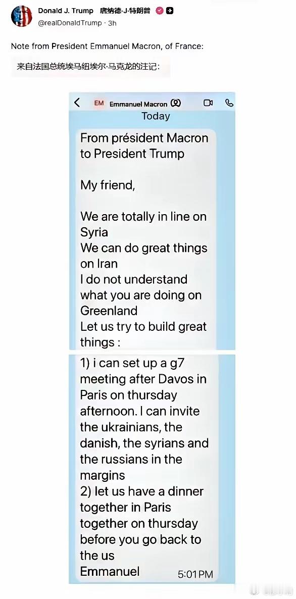 特朗普公开马克龙给他的私信估计马克龙想死的心都有:我把你放心上,你把我放网上。你