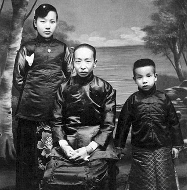 1918年,北京,18岁冰心与母亲杨福慈和三弟谢为楫的合影。 1918年,冰心18岁,已在北京生活多年。1918年考入协和女子大学理预科(后转文学系),正值青春期向文坛起步的关键阶段。五四运动前一年,她尚未大量发表作品,但家庭环境已奠定她“爱的哲学”的基础。 冰心穿高领旗袍,发髻简洁,站姿端庄,一手轻搭母亲肩上,眼神清澈而略带少女的青涩;母亲杨福慈坐正中,身着传统长袍,双手交叠膝上,面容慈祥,体现出大家闺秀气质;小弟谢为楫穿童式长袍马褂,站母亲右侧,表情严肃可爱。