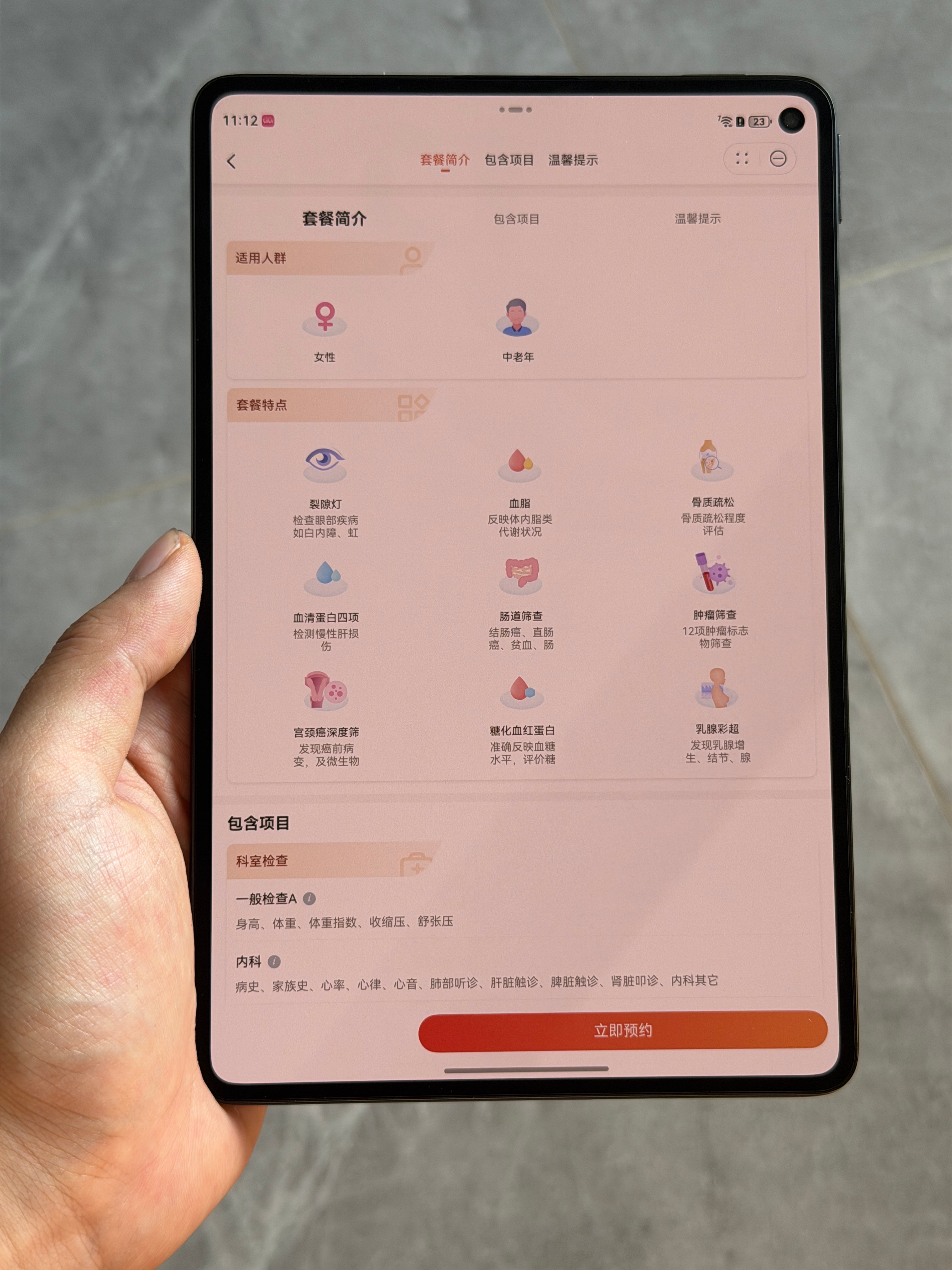 用华为MatePad mini给俺妈约了个体检。今年试试爱康,看看体验咋样~