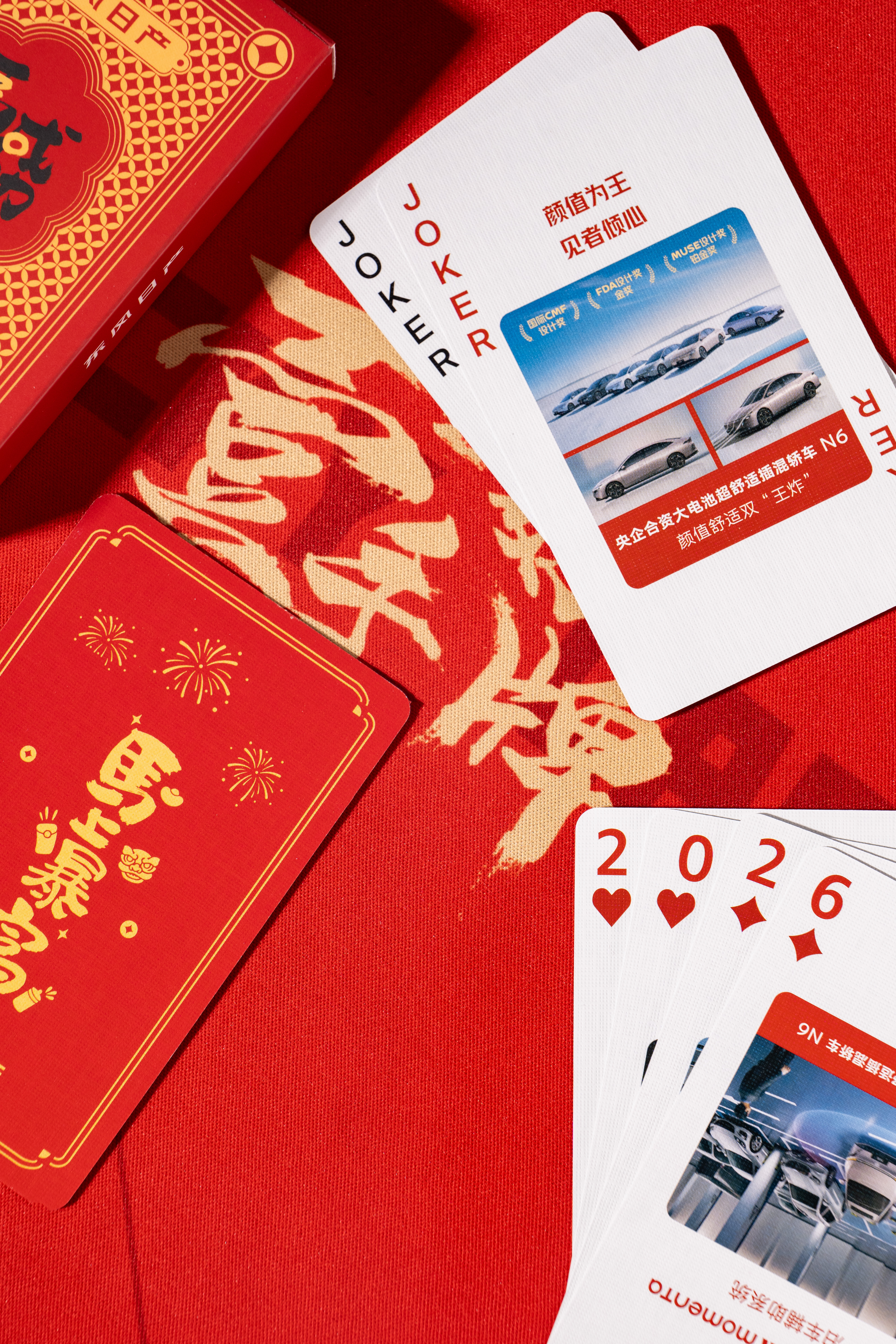 收到一副扑克牌,日产N6“俩王 四个二”的王牌实力无须多言,所以……咱年后咱约个掼蛋局?新年王炸东风日产叫地主
