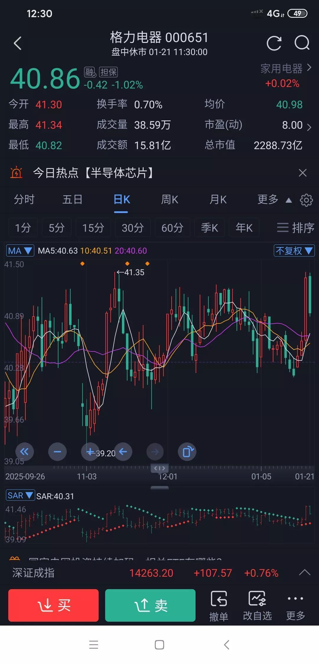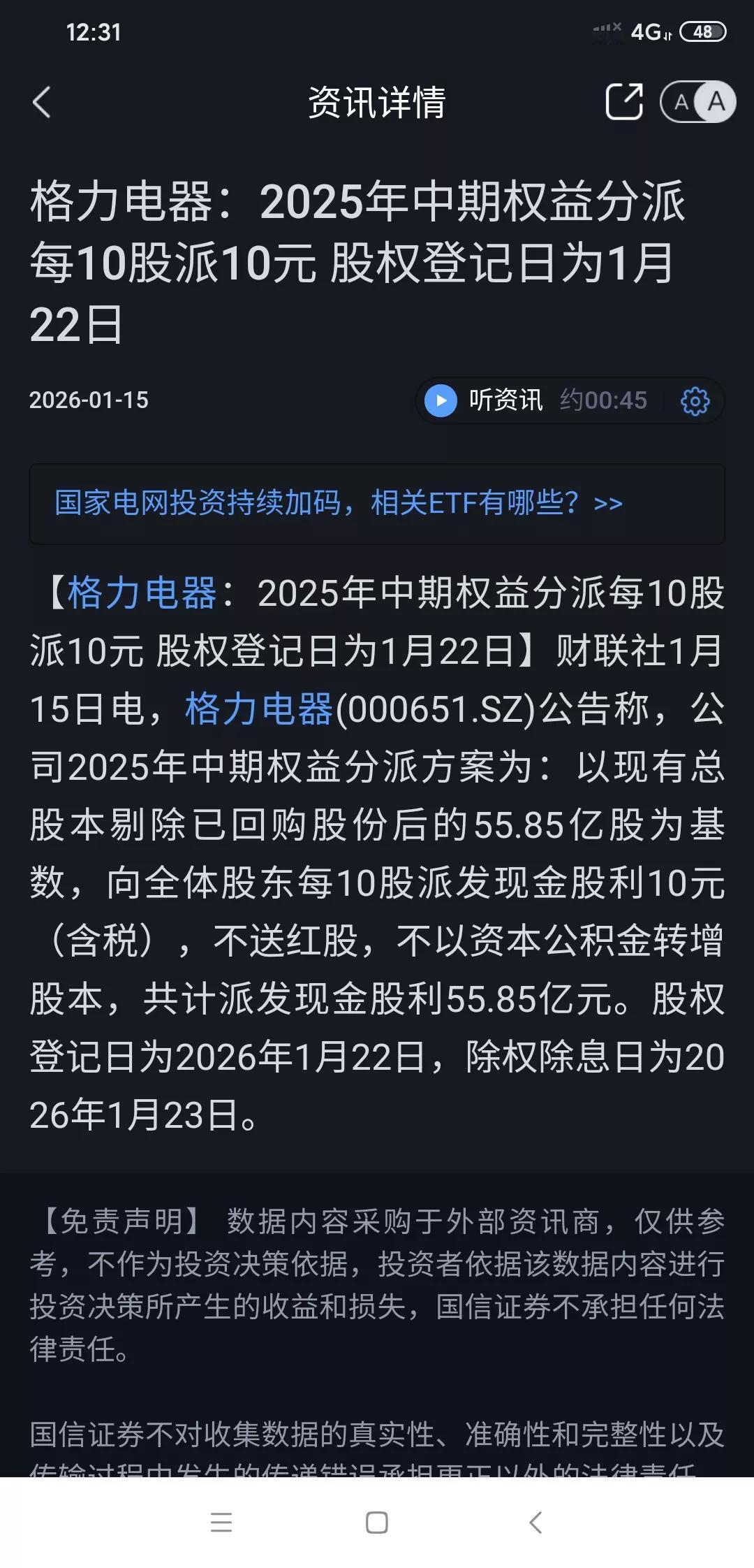 格力电器明天就登记分红了。要分红前进吗? 格力昨天股价涨势不错,不过今天还是绿的,只能盼着填权咯。分红登记意味着股东能拿到红利,这可是实实在在的收益。虽然现在股价表现不佳,但长远来看,股价还是会涨上来的,你看格力2块钱上市,现在复权后股价八千多,涨了多少倍啊? 格力电器,现在已经不仅仅是家电龙头了,而是已经研发能力很强的科技公司,潜力非常大的。它有强大的品牌影响力,强大的研发实力,产品质量一直在线。 所以,长远看股价涨上去是大概率事件。 现在股价低估了,你觉得呢?